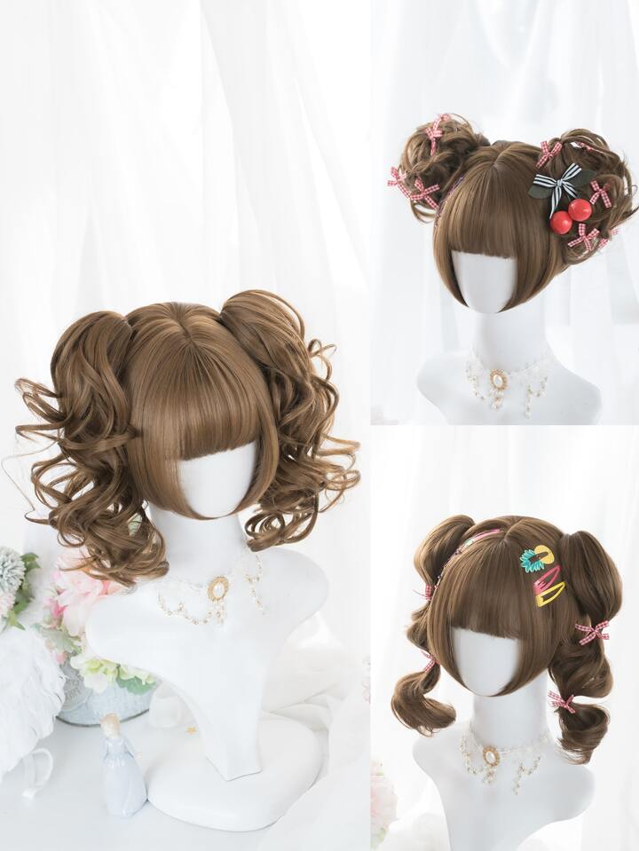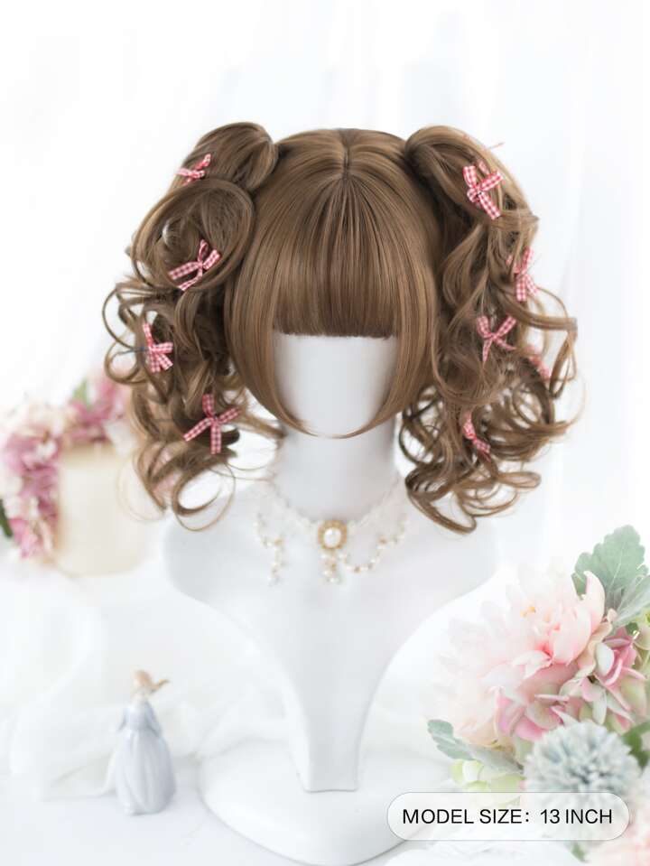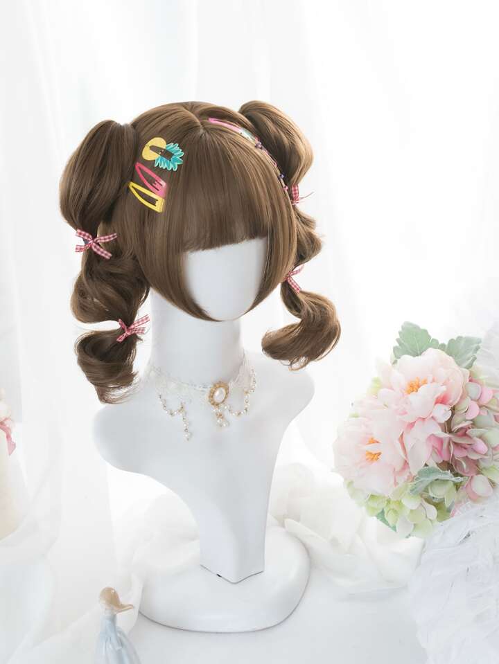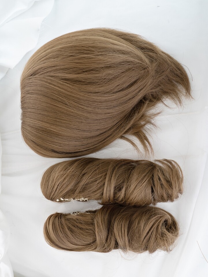 1 pièce Perruque synthétique avec franges & 2 pièces clip Extension de cheveux