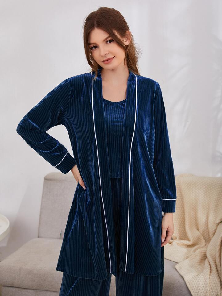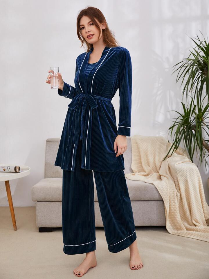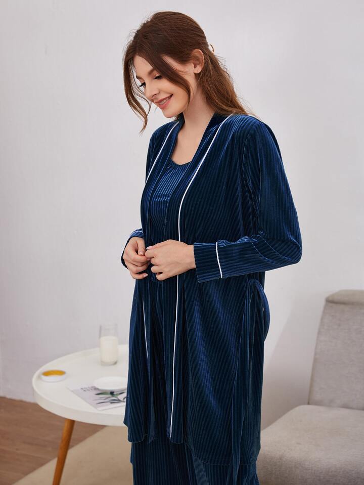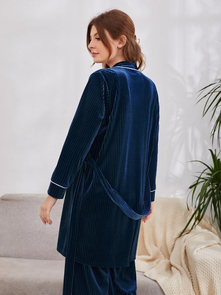 1 pièce Peignoir en velours avec ceinture et piqûre