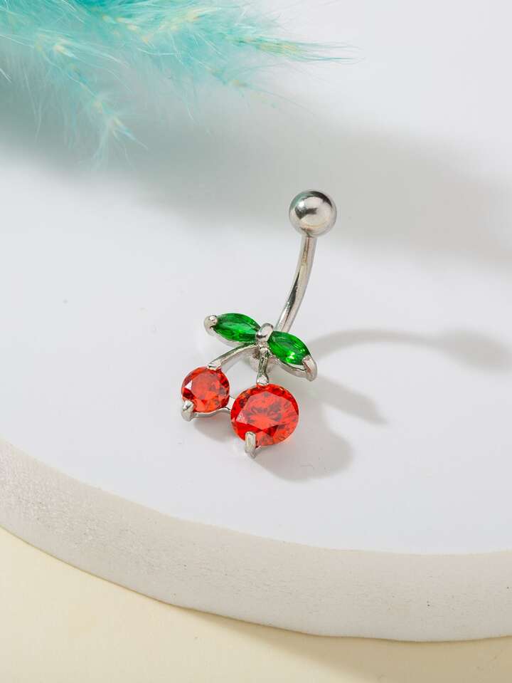 1 pièce Anneau de ventre de cerise de strass de cuivre pour des femmes et des hommes, piercing punk, un cadeau à la mode de bijoux de corps pour n'importe quelle occasion