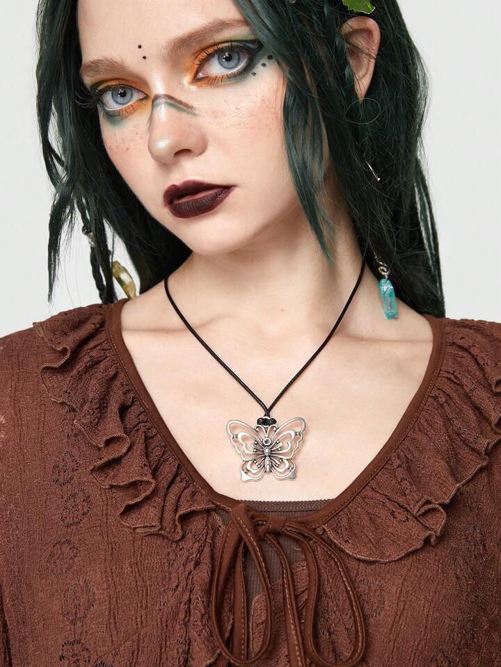 Fairycore 1 pièce Collier Mode En Alliage De Zinc À Breloque Papillon Pour Femme Pour Décoration Quotidienne