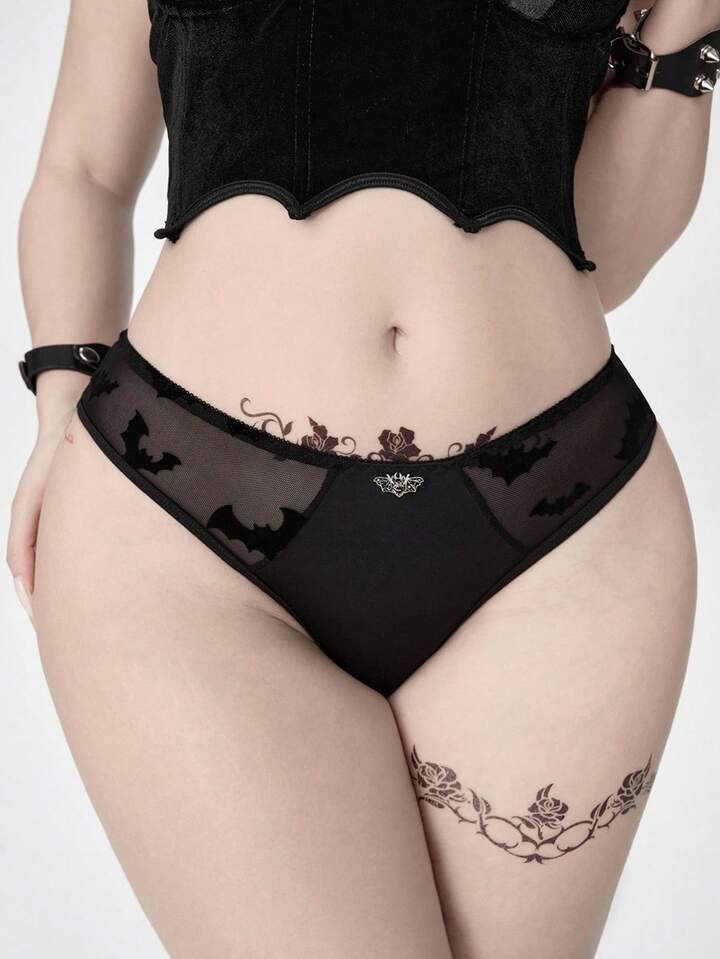 1 pièce Culotte triangle floquée chauve-souris gothique