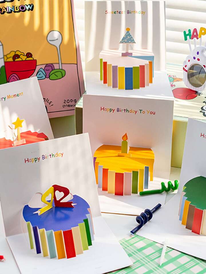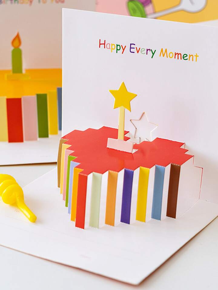 1 pièce Carte de vœux aléatoire 3D anniversaire avec Enveloppe