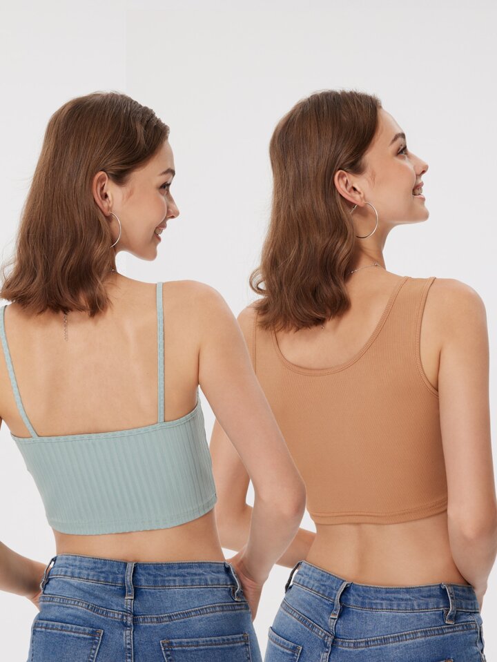 1 pièce Top à fines brides court côtelé & 1 pièce Top sans manches court