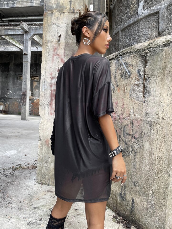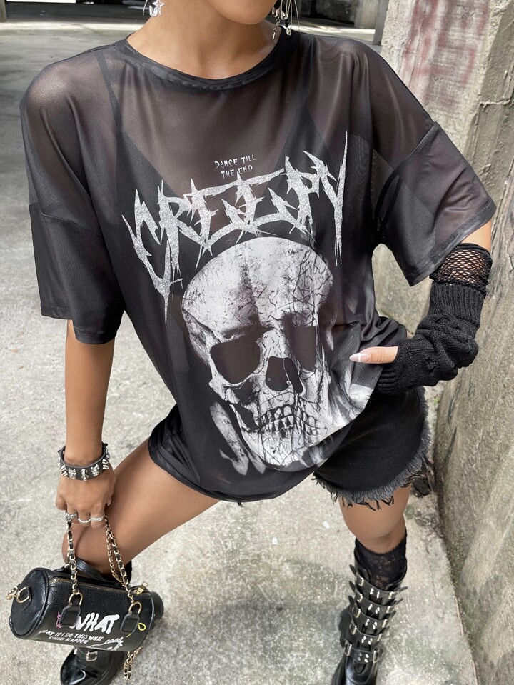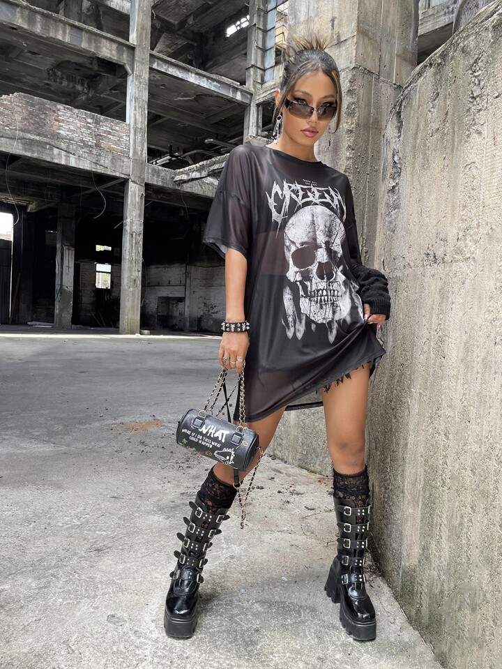 1 pièce Robe à imprimé tête de mort et slogan en tulle