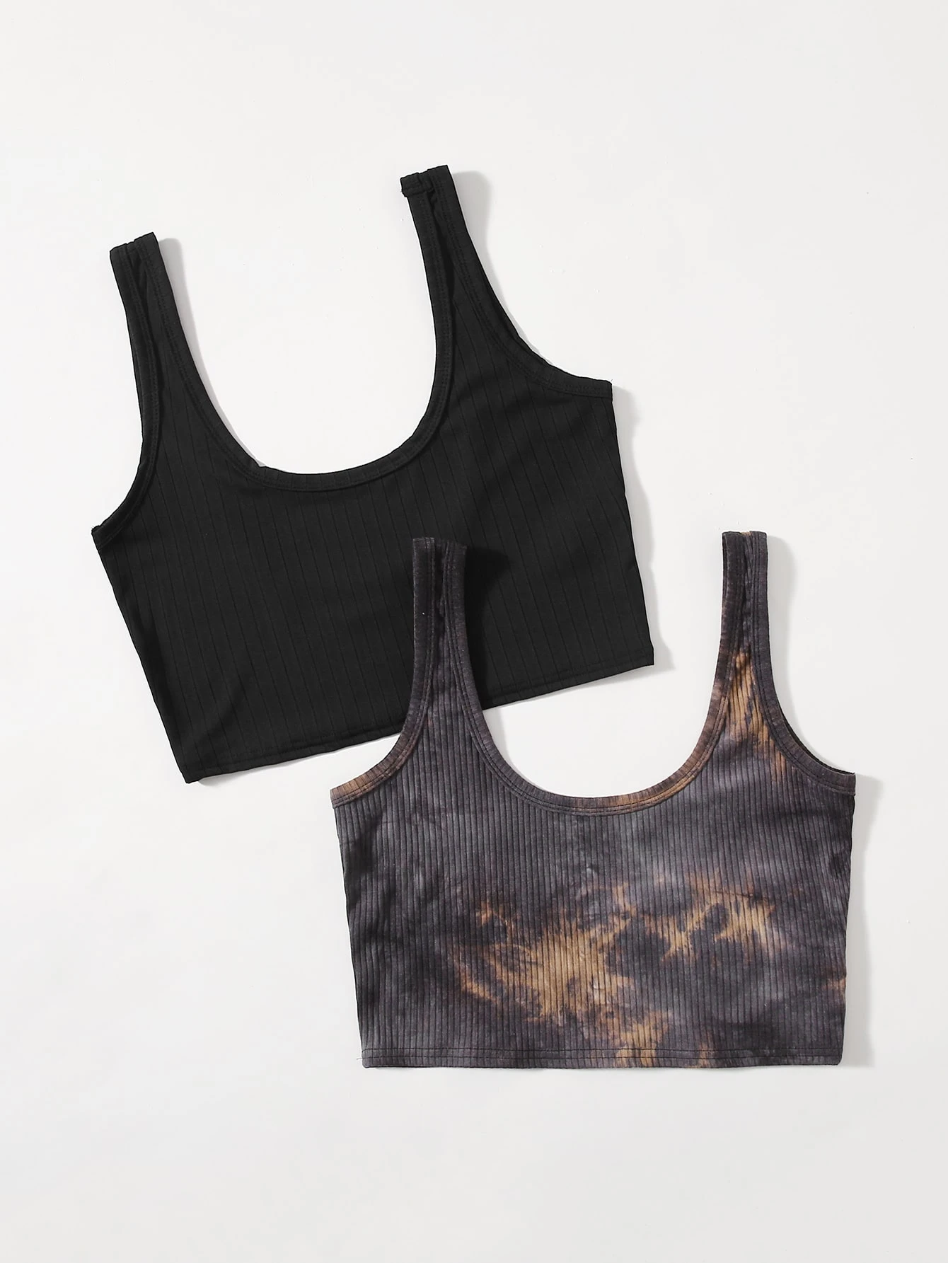 1 pièce Top sans manches unicolore côtelé & 1 pièce Top sans manches tie dye