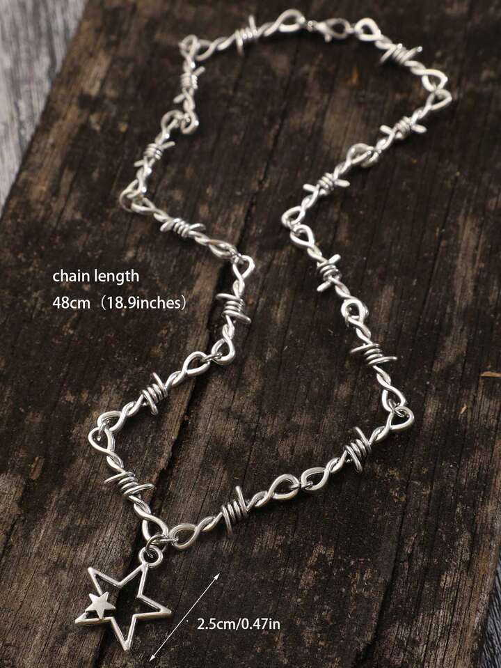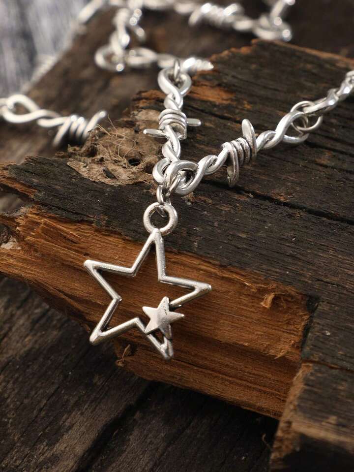1 pièce Collier Vintage En Alliage De Zinc À Breloque Étoile Épine Design Pour Femme Pour Décoration Quotidienne