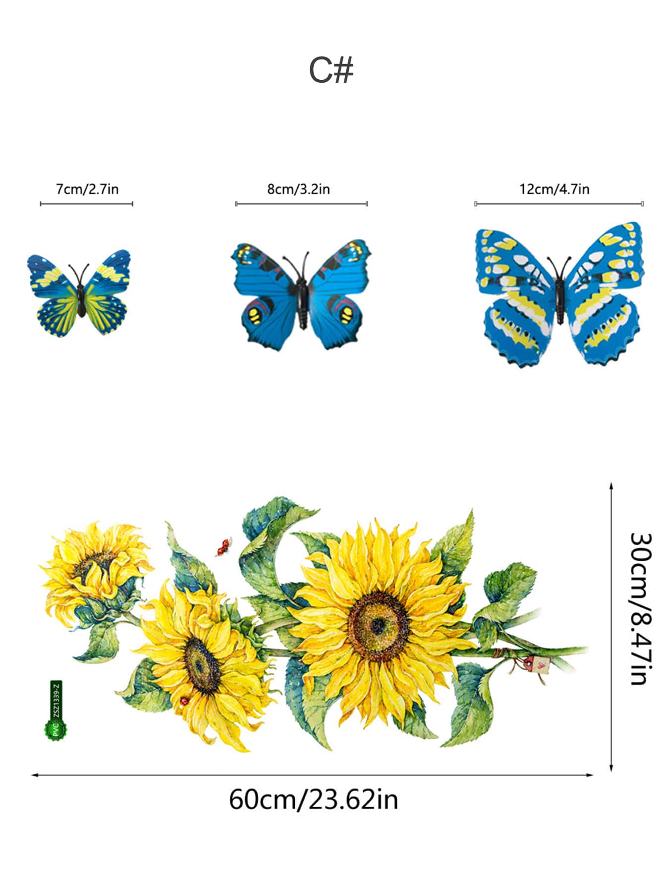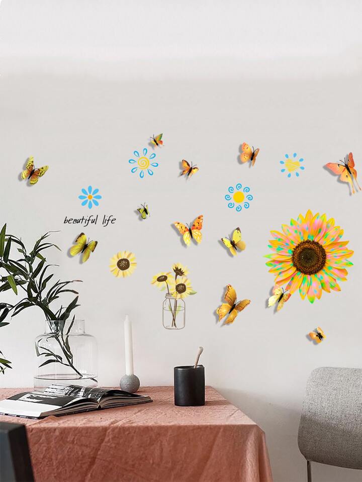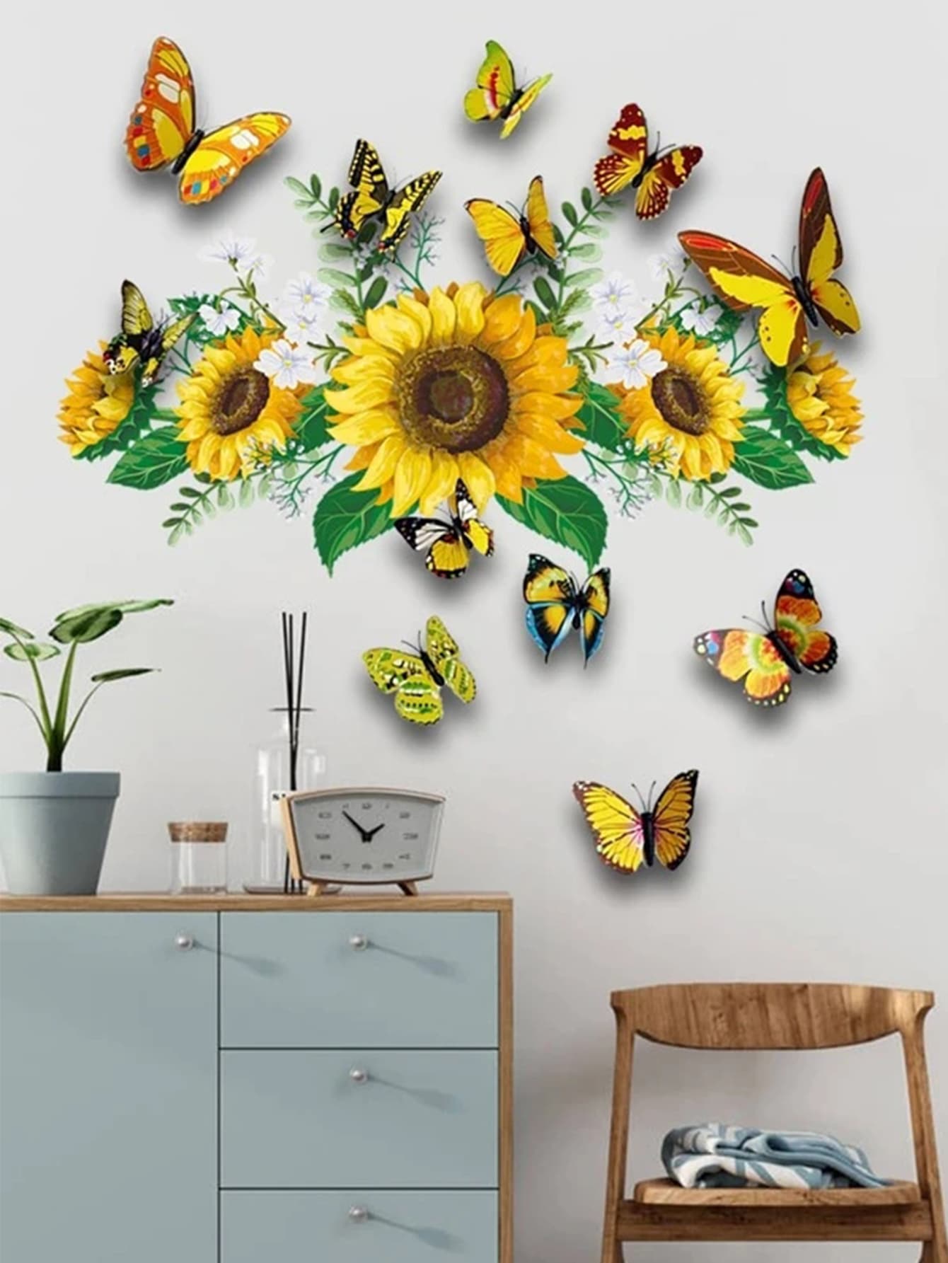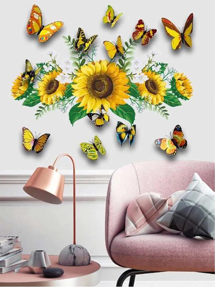 1 set Autocollant mural papillon 3D & à motif tournesol