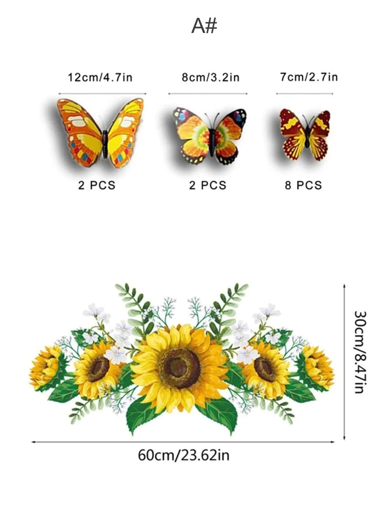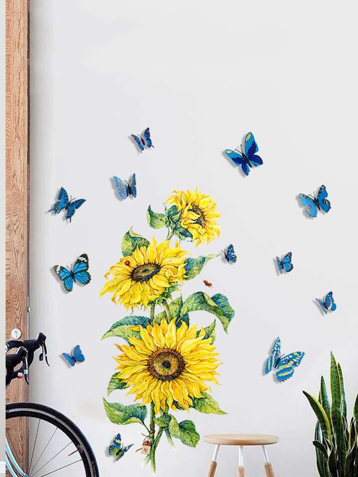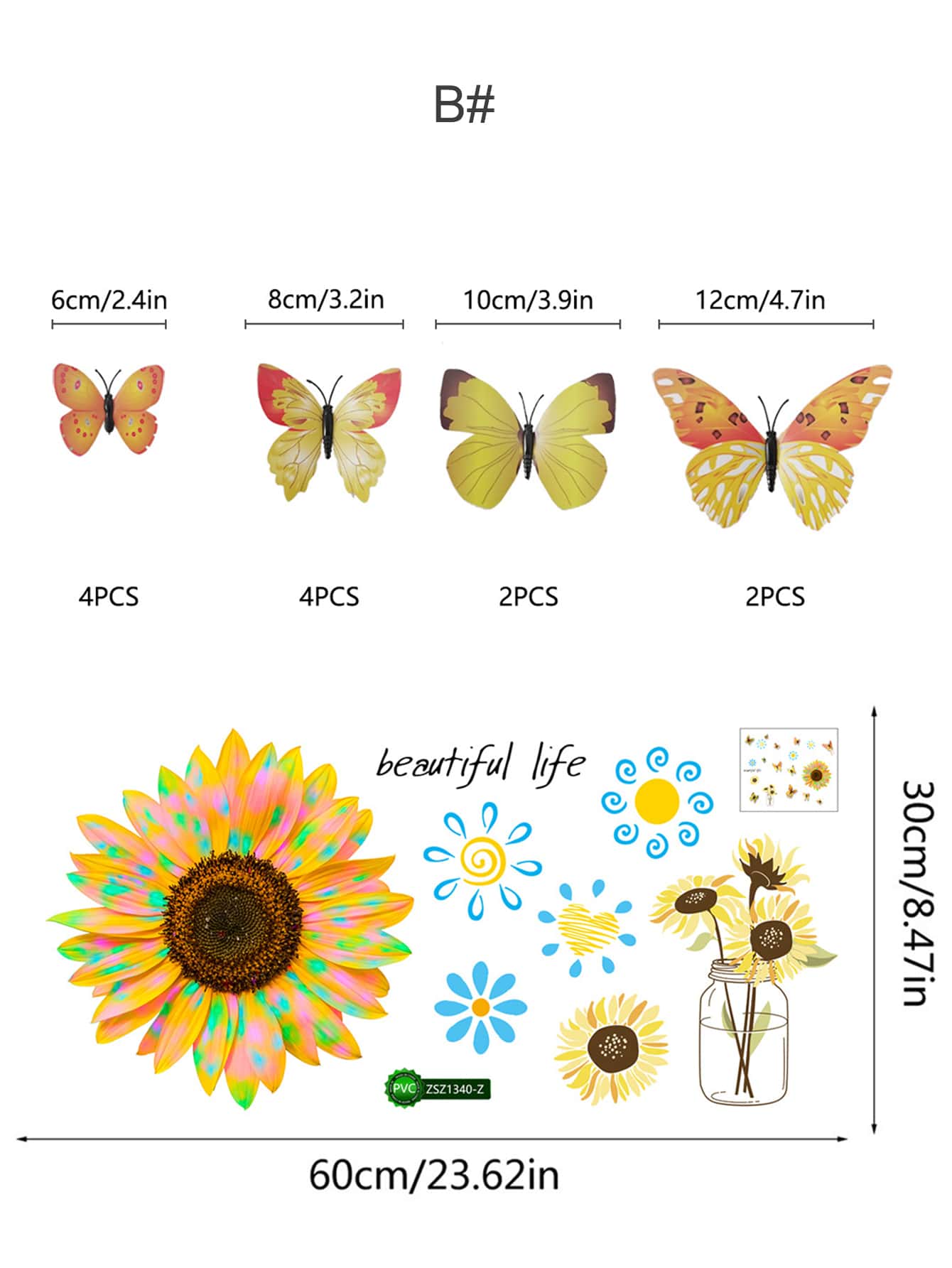 1 set Autocollant mural papillon 3D & à motif tournesol
