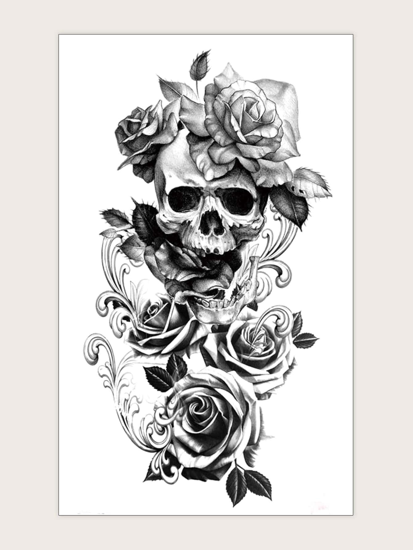 1 feuille Sticker de tatouages à tête de mort fleuri