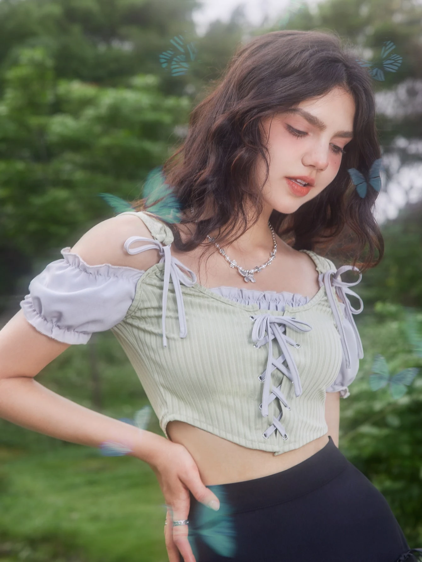 Blouse 2 en 1 à épaules dénudées