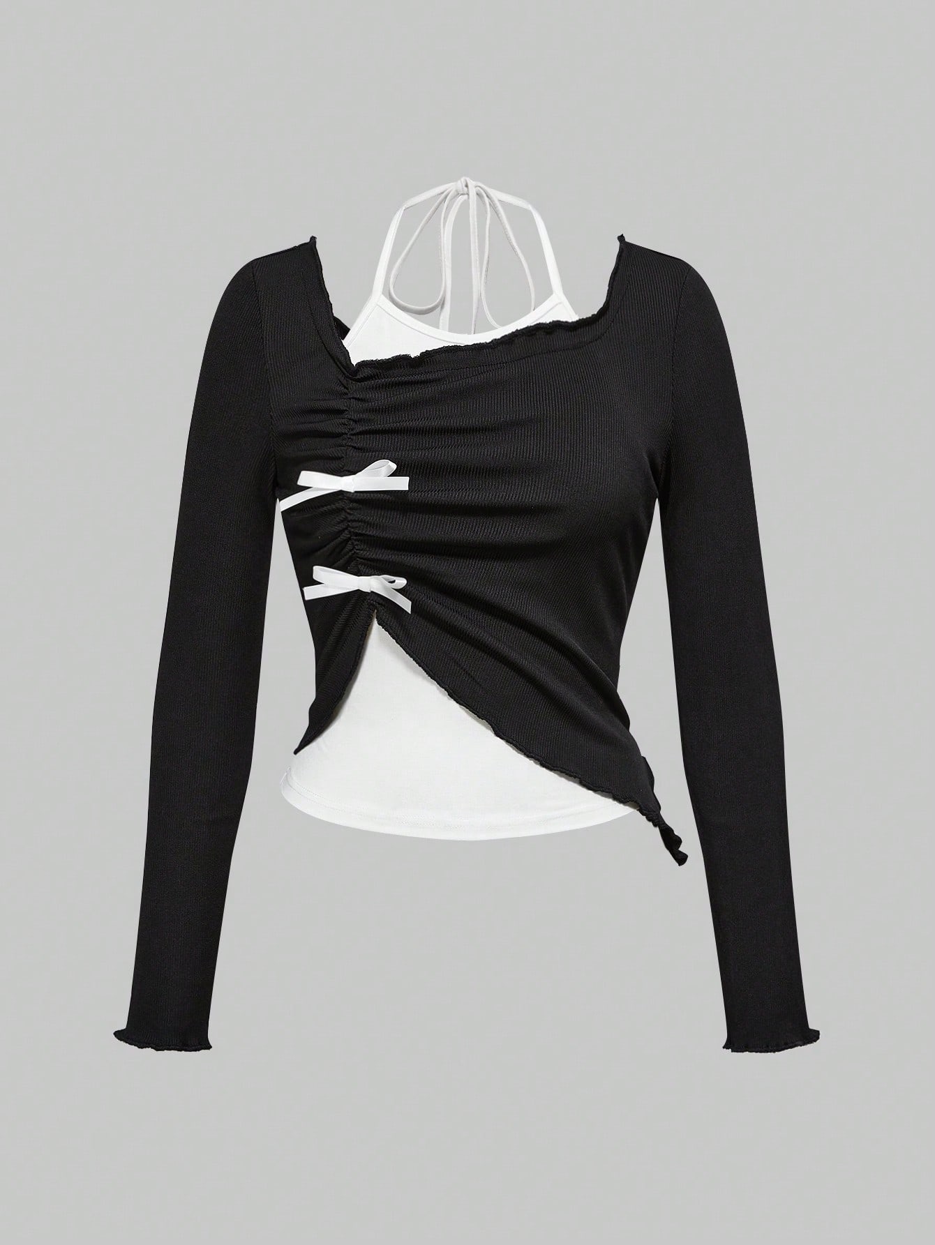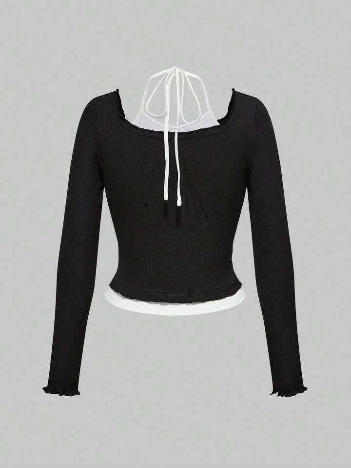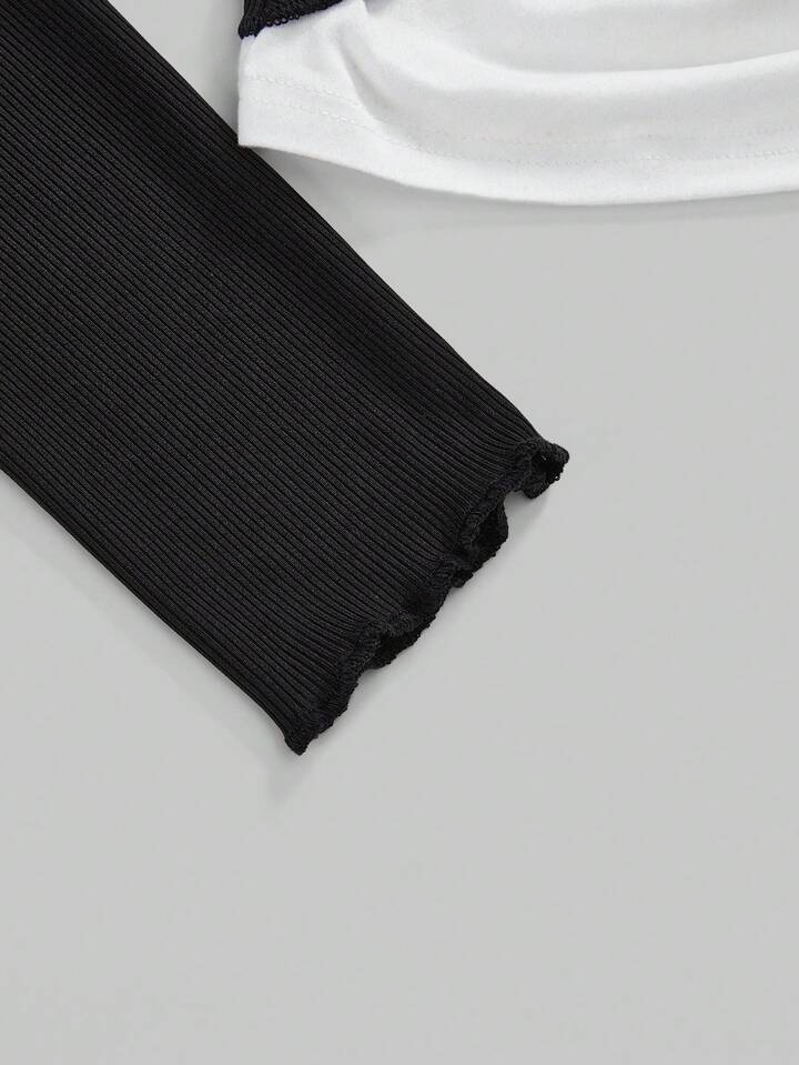 T-Shirt mignon à encolure ras-du-cou et manches longues, 2 en 1