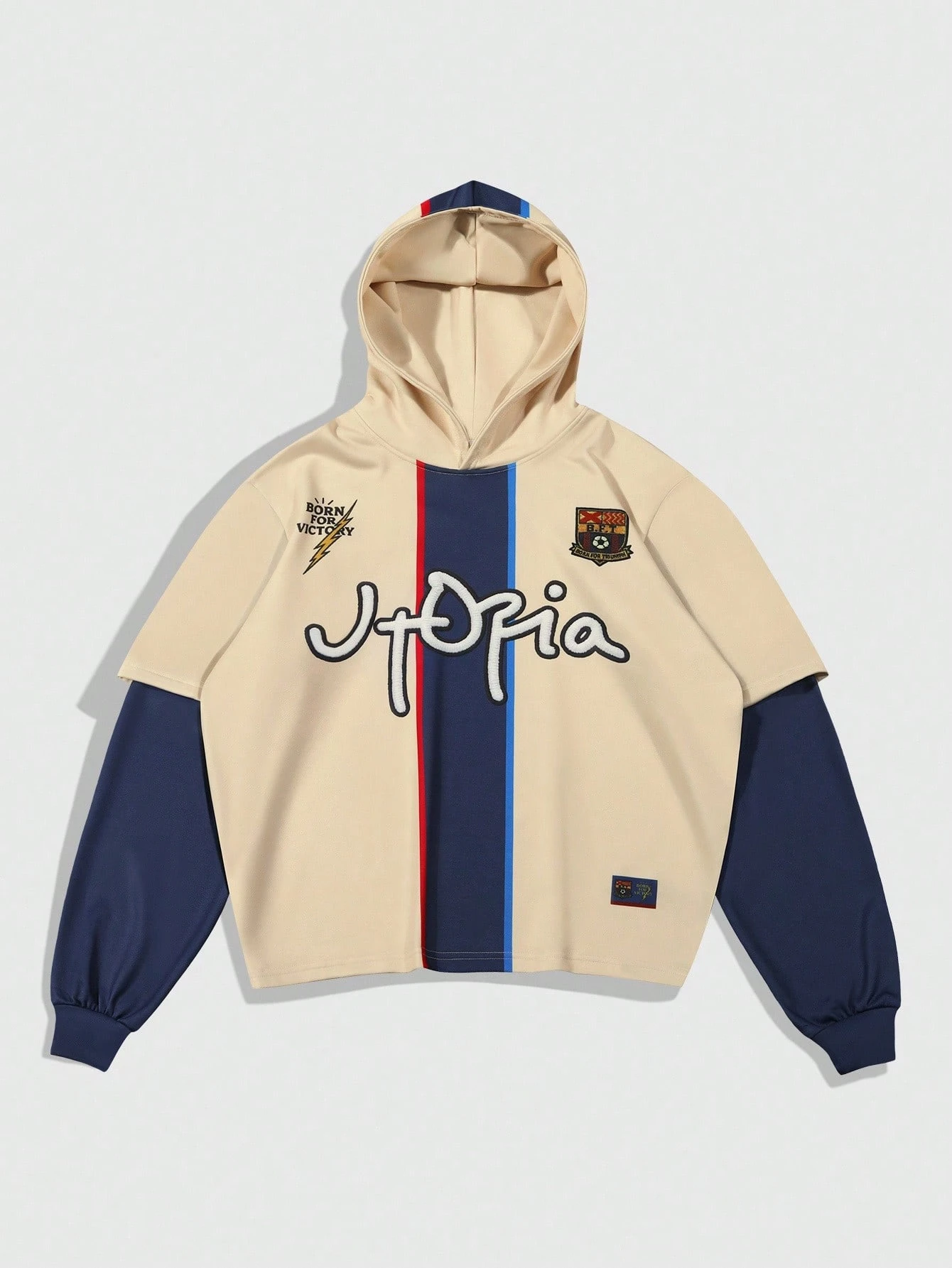 Prep Sweat-shirt à capuche à manches longues avec bloc de couleurs et imprimé lettres 2-en-1