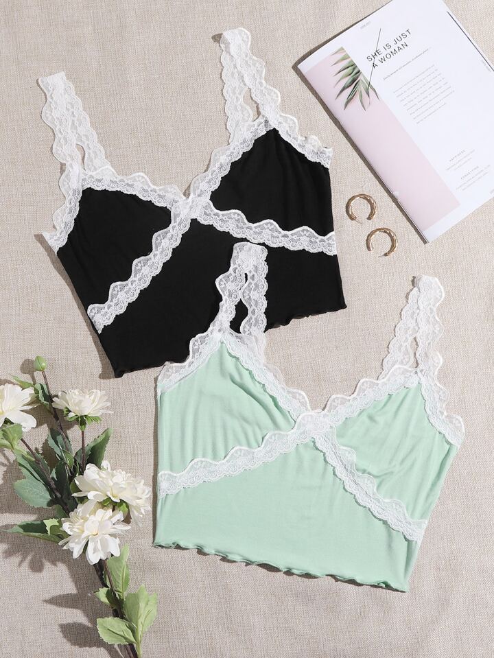 2 paquets de hauts cache-cœur à dentelle contrastée
