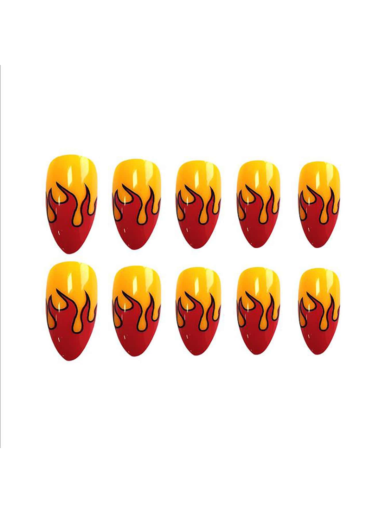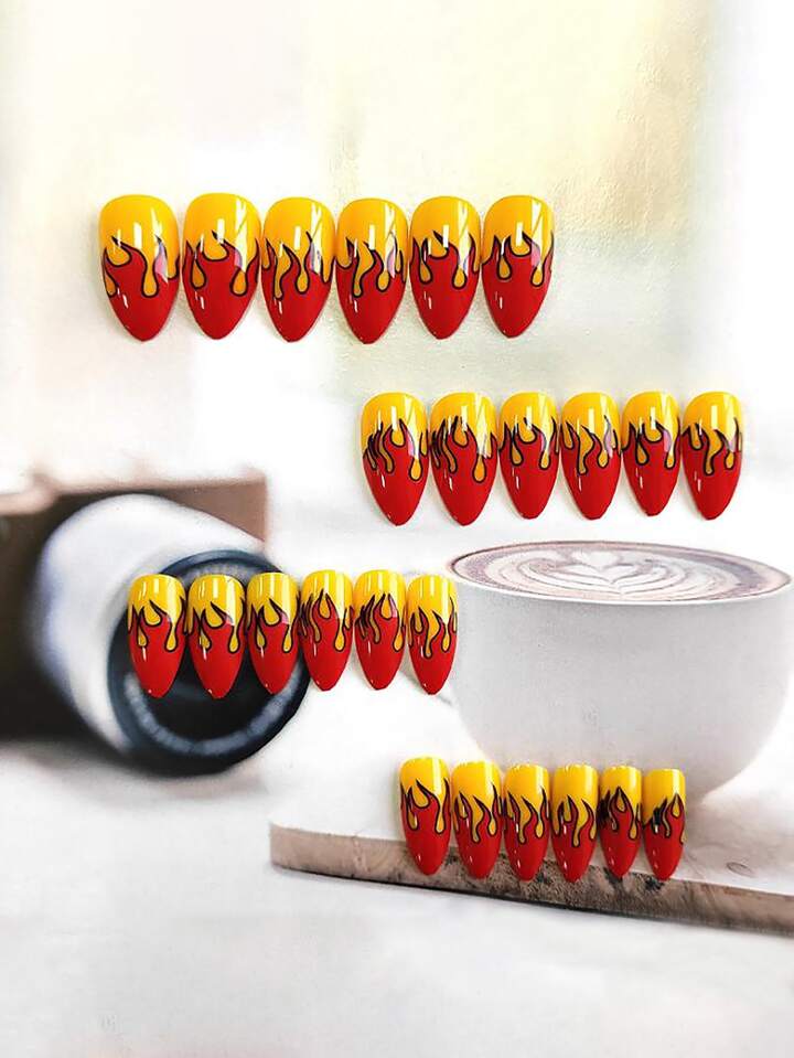 24 pièces Faux ongle avec flamme