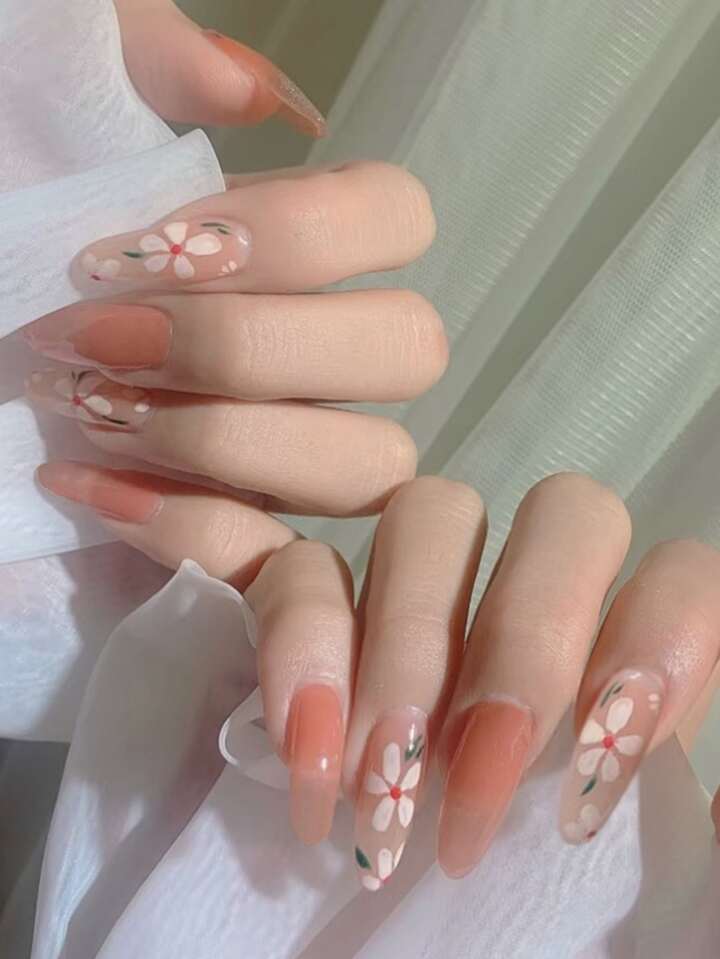 24 pièces avec motif fleur Faux ongles & 1 feuille ruban