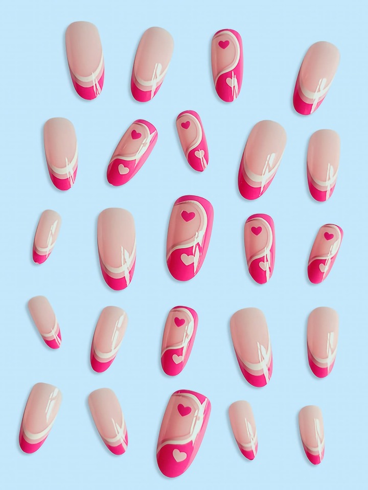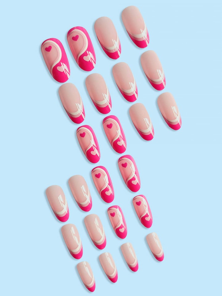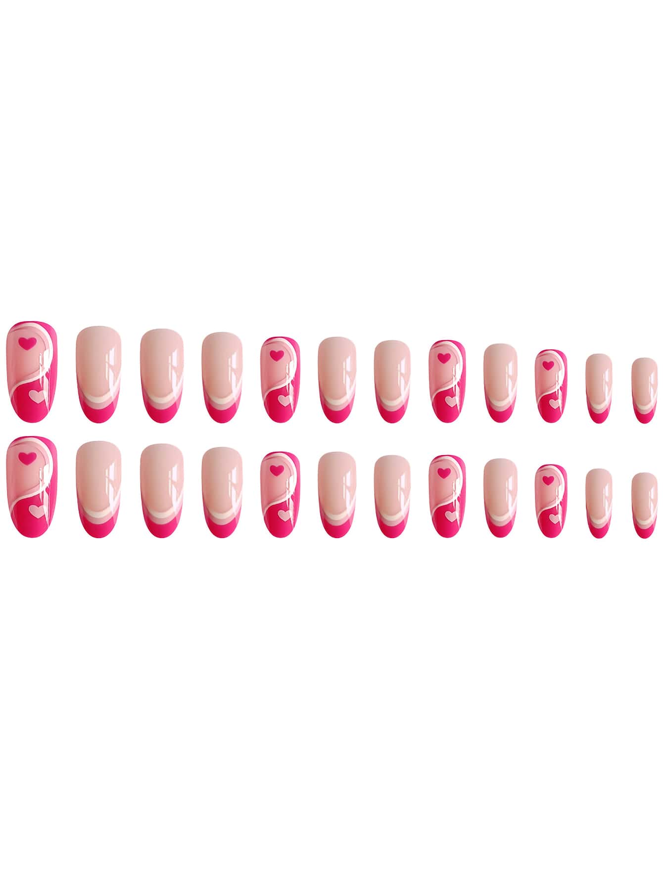 24 pièces Faux Ongles Ovale Avec Motif Cœur & 1 Feuille De Ruban À Ongles