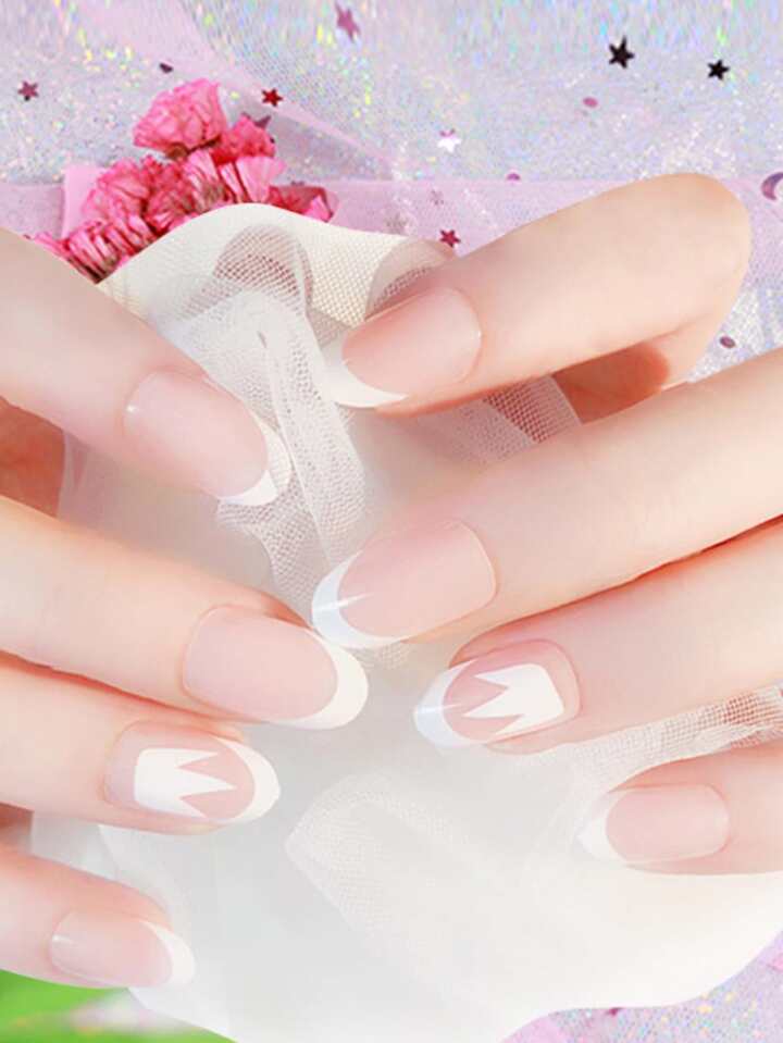 24 pièces Faux ongle rond & 1 pièce Lime à ongle & 1 feuille Ruban