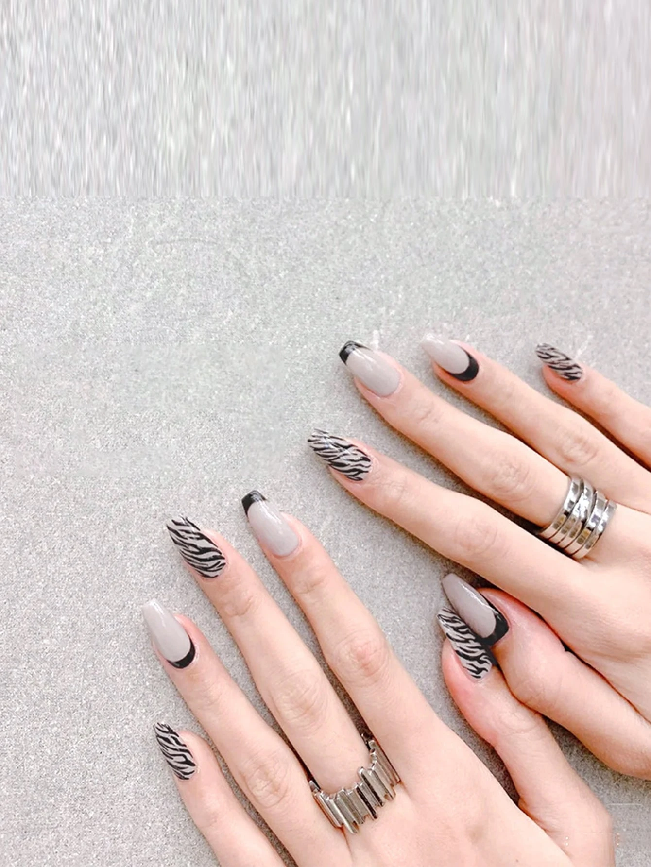 24 pièces Faux ongles à rayures zébrées & 1 feuille Ruban ongle