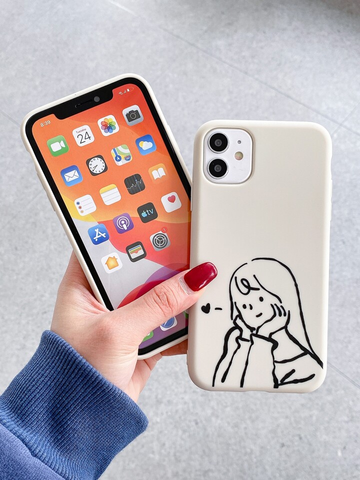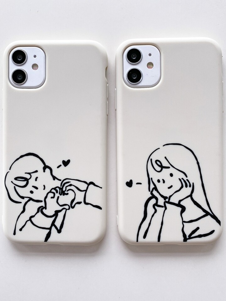 2 pièces Coque de téléphone à motif couple de dessin animé