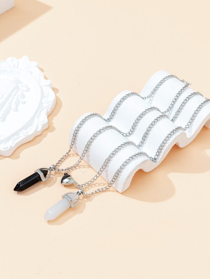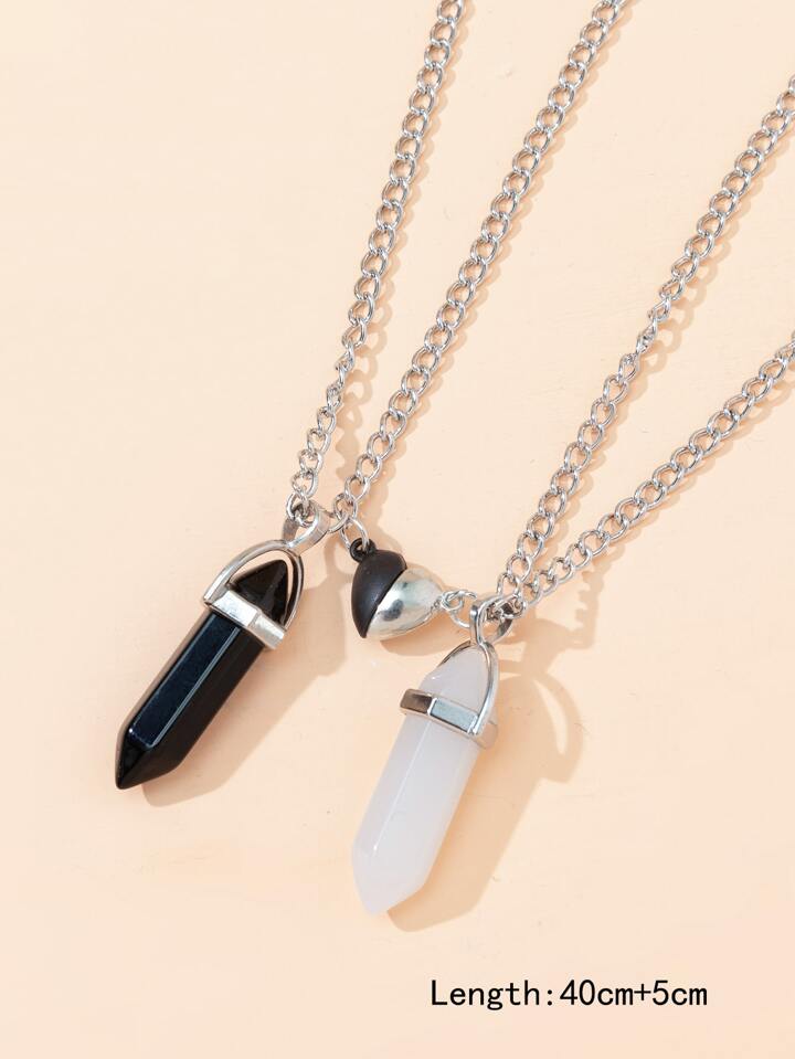 2 pièces Collier couple magnétique cœur & à pendentif géométrique