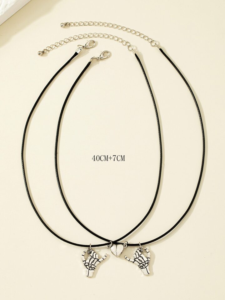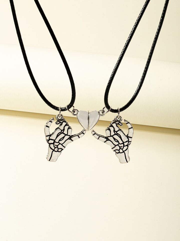 2 pièces Collier couple squelette main & magnétique à breloque cœur