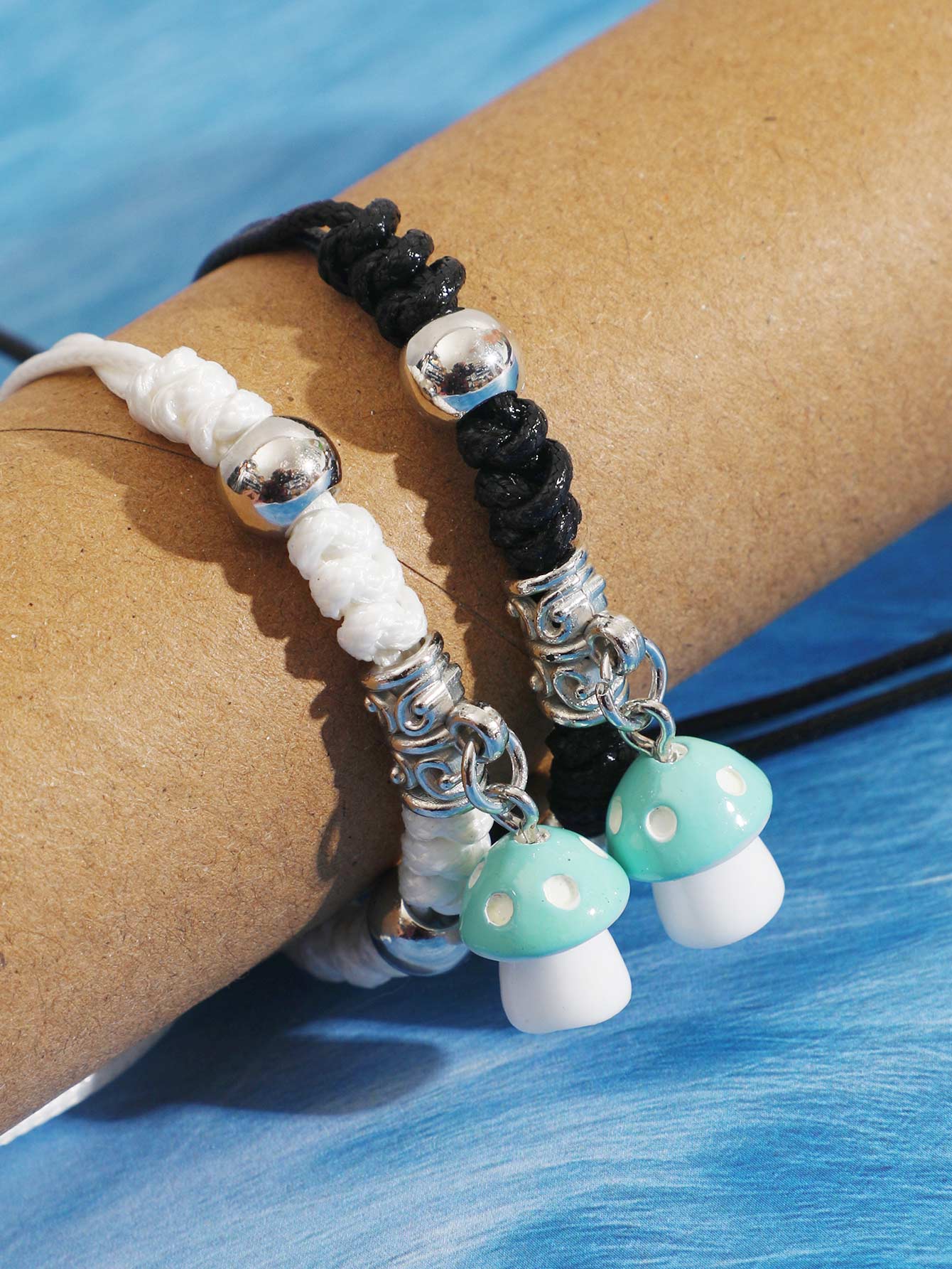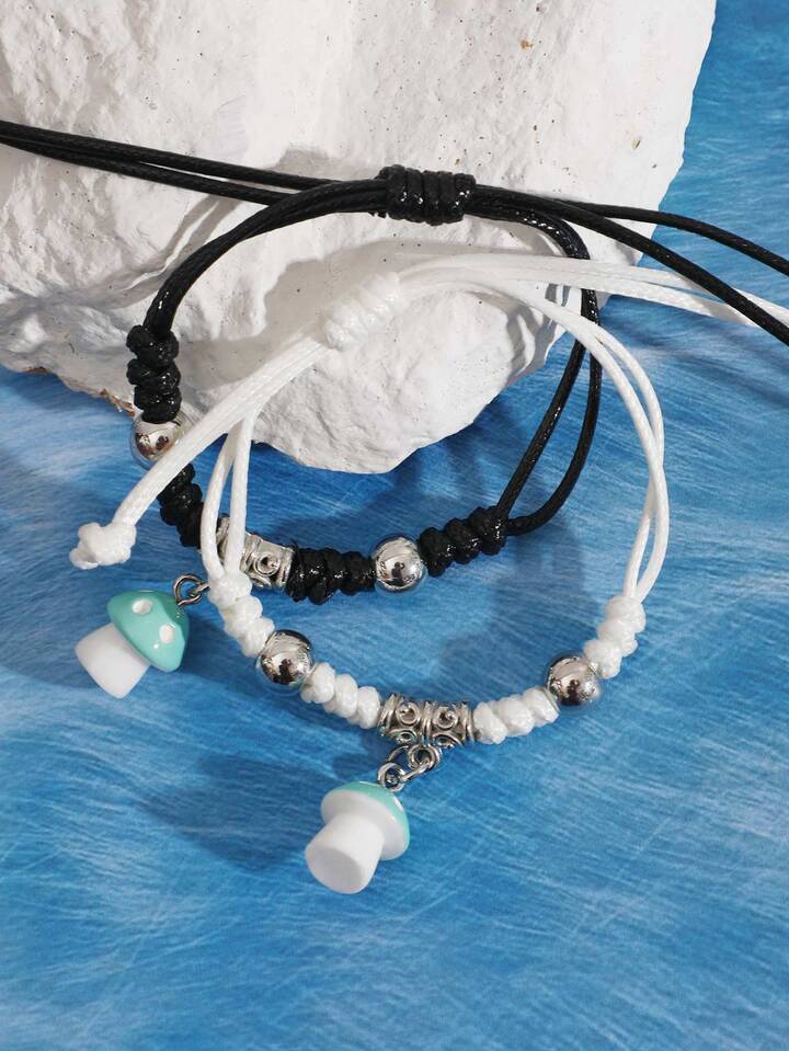 2 pièces Bracelet champignon breloque