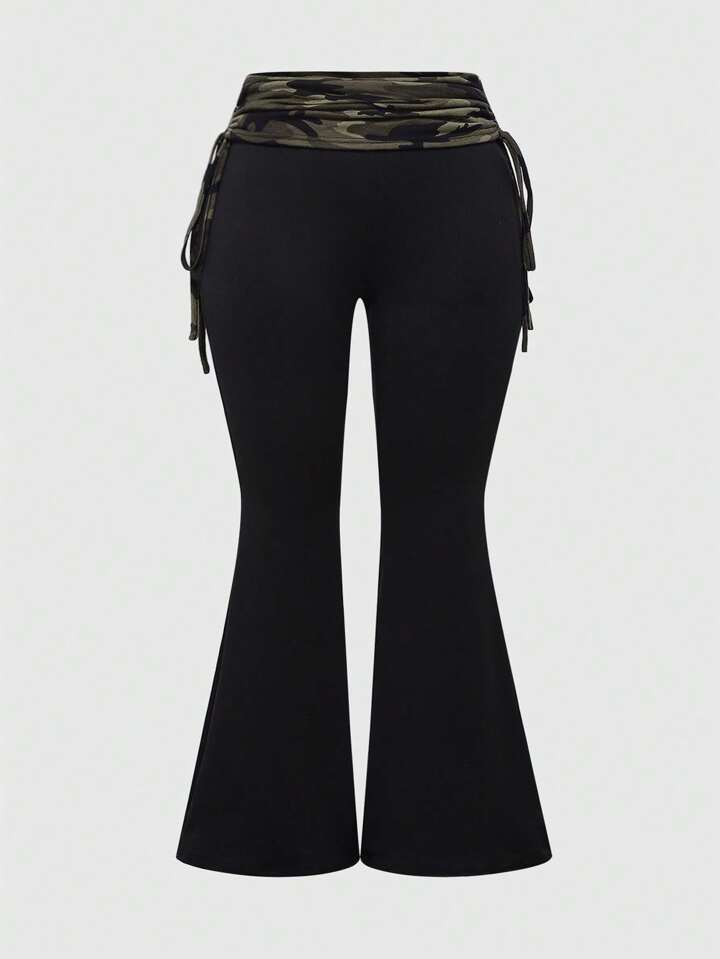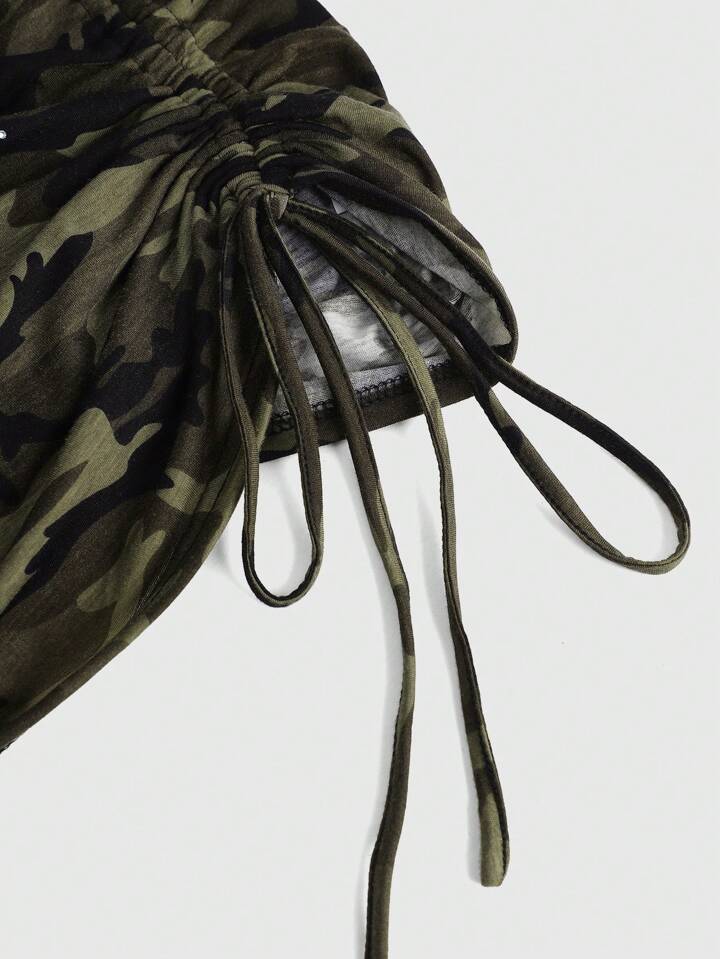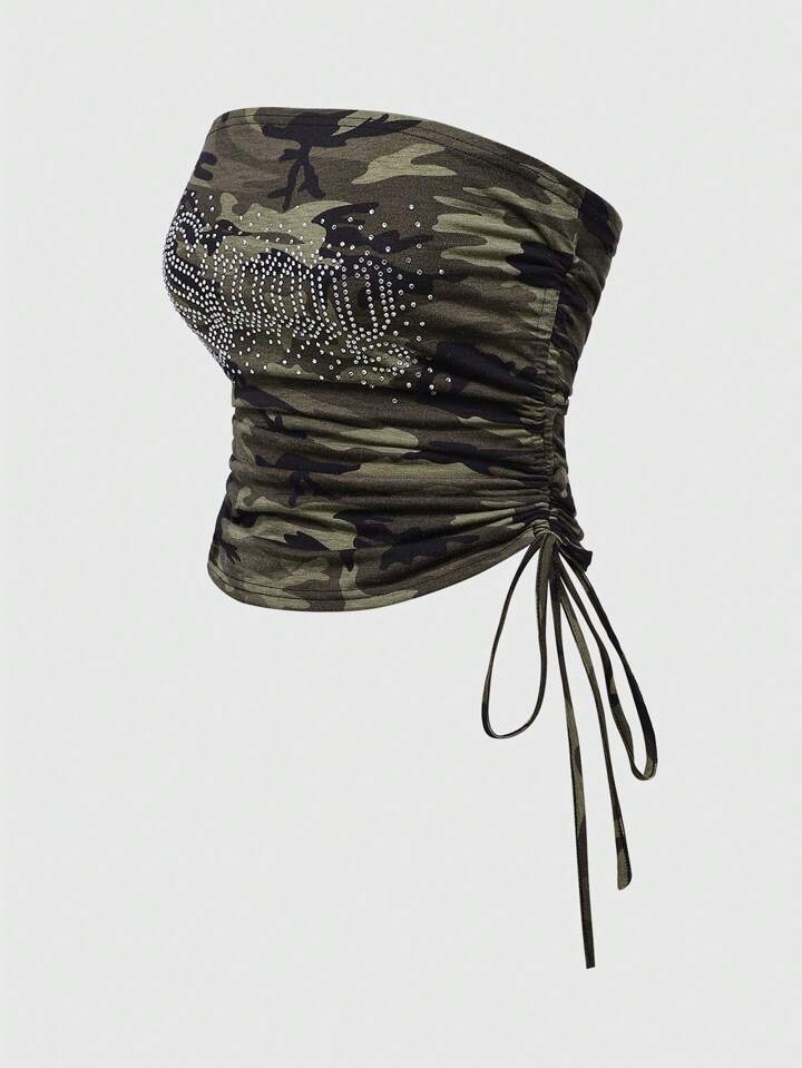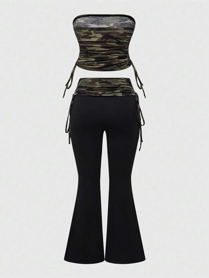 2 pièces/Set Top tube off-shoulder avec strass, imprimé léopard et pantalon à cordon pour femmes grandes tailles, ensemble sexy