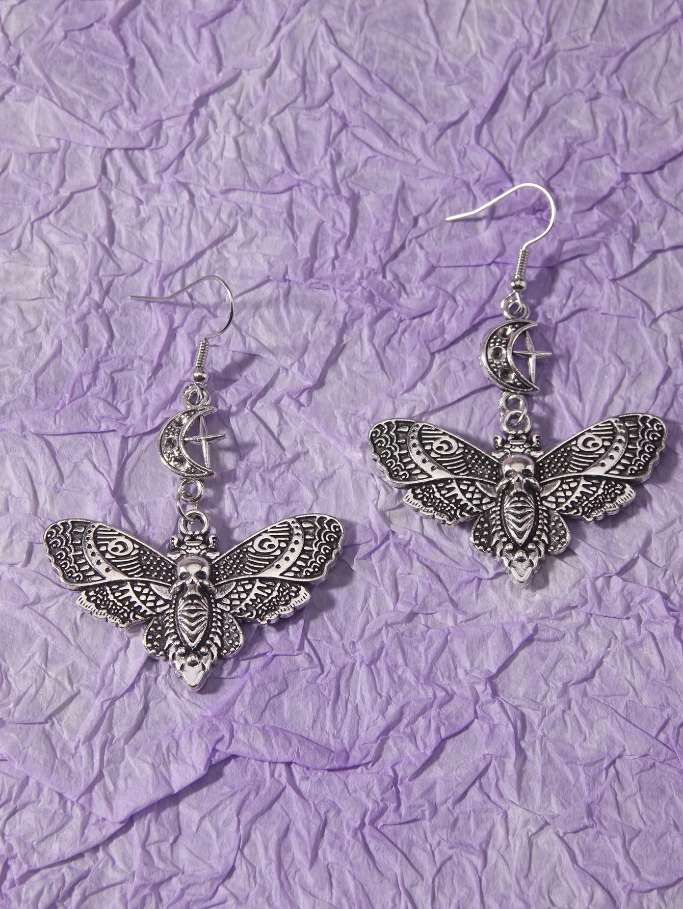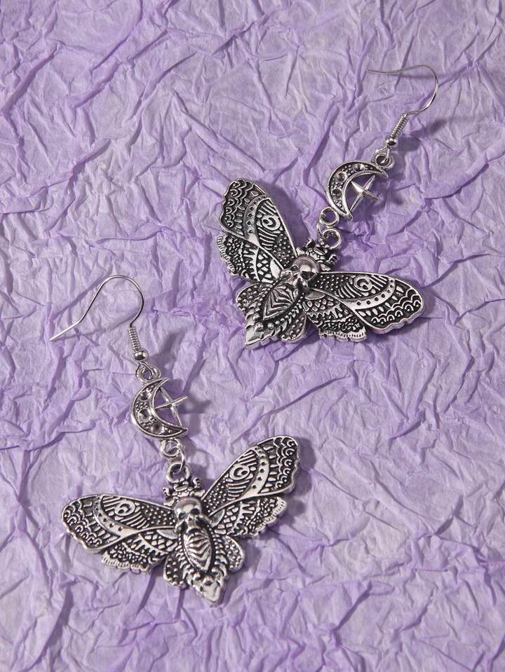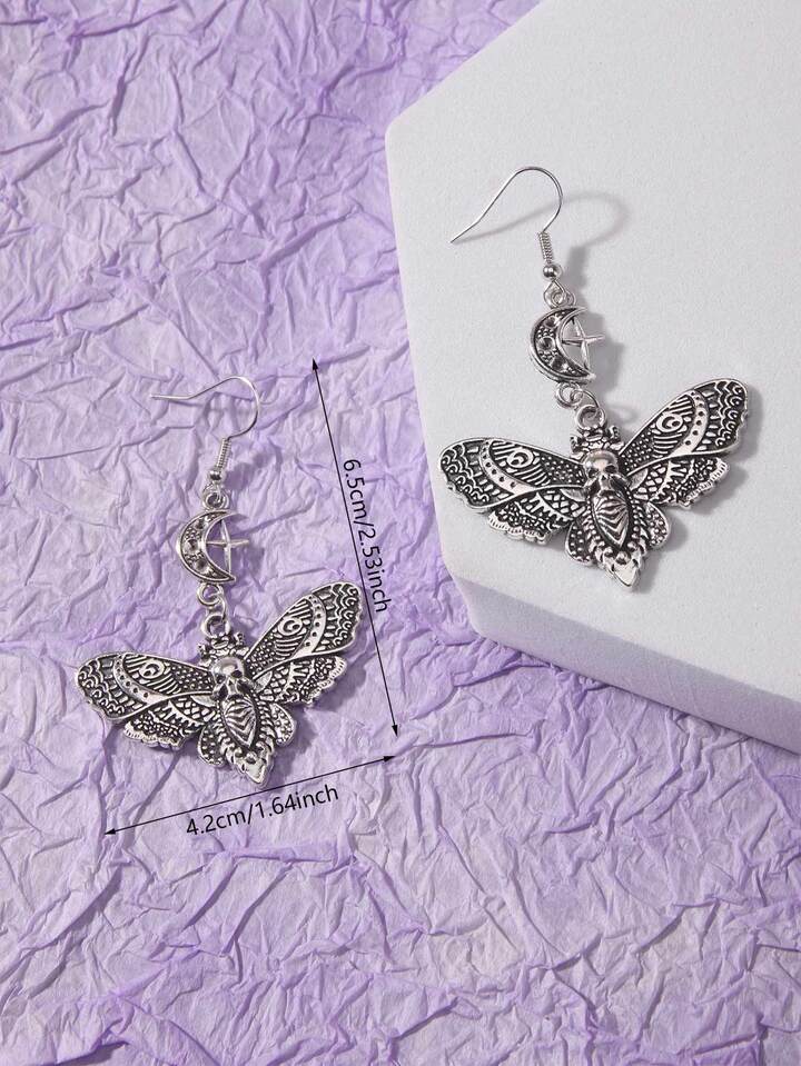 2 pièces Pendants D'oreilles Tête De Mort & À Détail Papillon