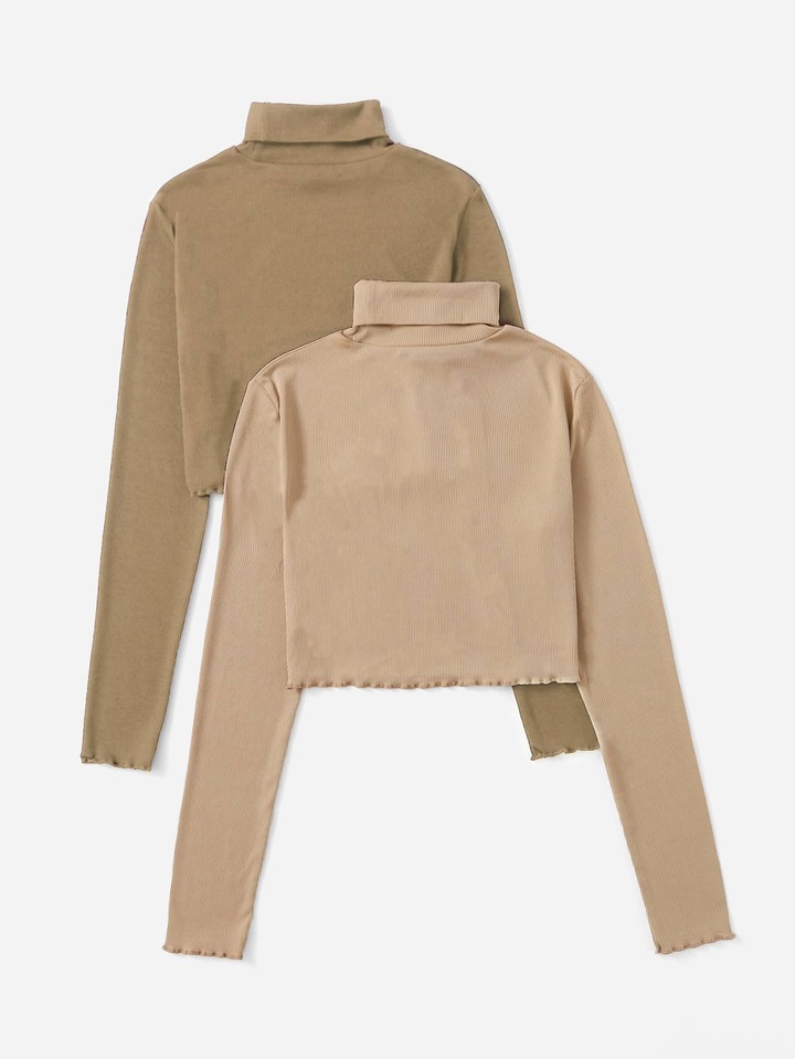 2 pièces T-shirt court unicolore à col montant