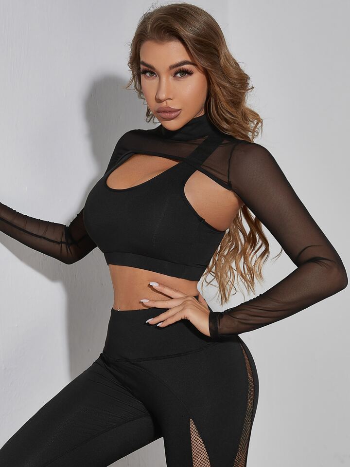 2 pièces Ensemble Soutien-gorge yoga actif court & Top très court transparent