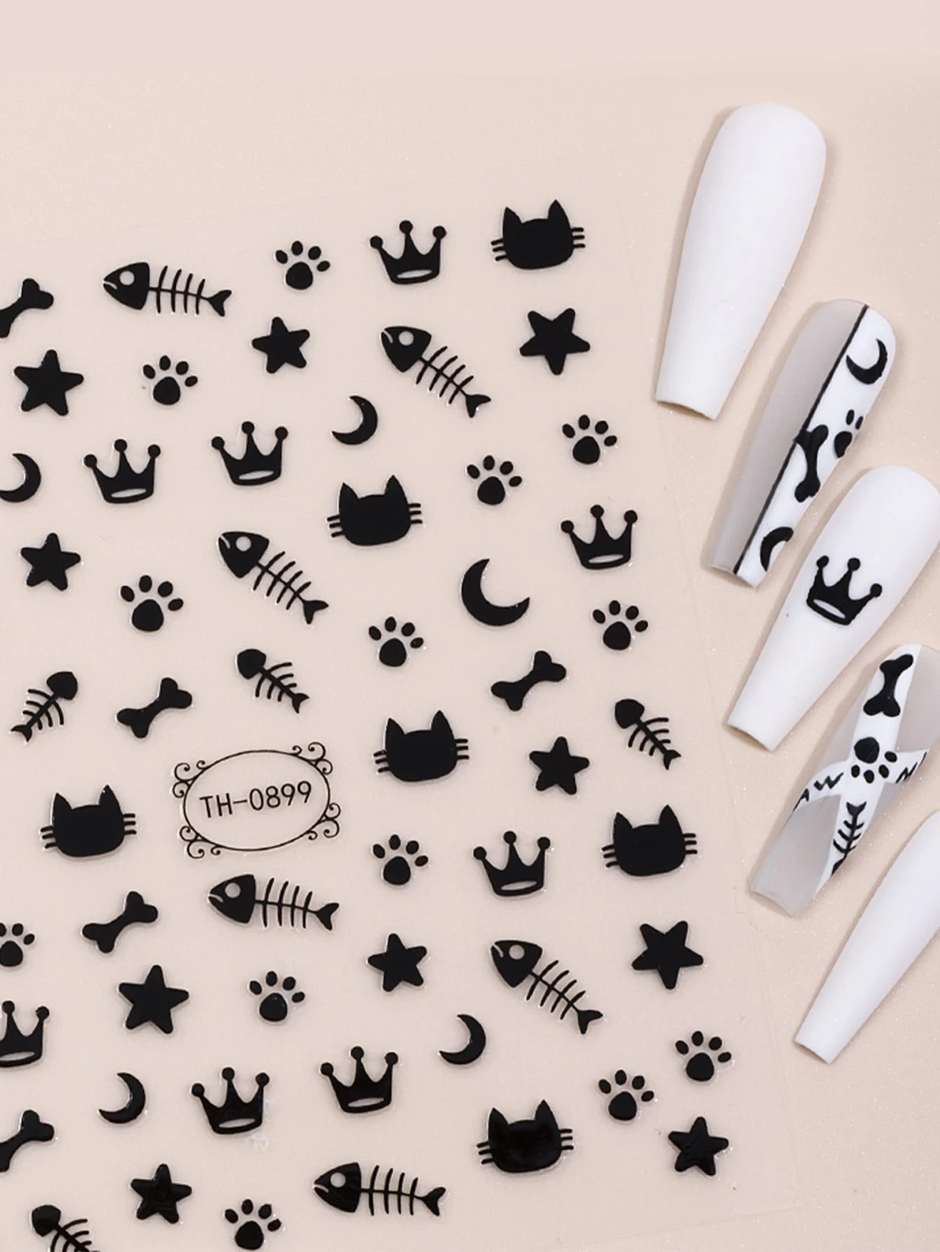 2 feuilles Autocollant à Nail Art chat et étoile