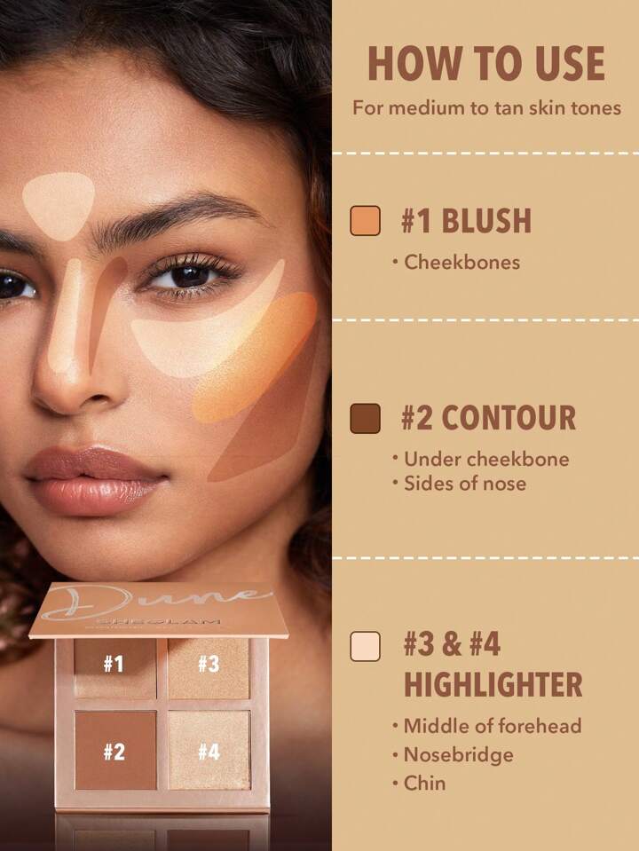 Palette De Fards à Joues 3D Pro Face-Dune 4 Couleurs Contour Blush Palette Longue Tenue Hautement Pigmenté RéSistant à La Transpiration Shimmer Bronzer Contouring Contour Mat Naturel Cadeaux De NoëL Et D'Hiver Contour & Bronzer Marque Beauté Visage Maquillage CosméTique Pour Femmes Filles Parfait Pour Hiver IdéAl Pour Y2K ÉLéGant Mode Adapté Pour Anniversaire Xmas Cadeau FêTe PrêT Meilleure Couleur