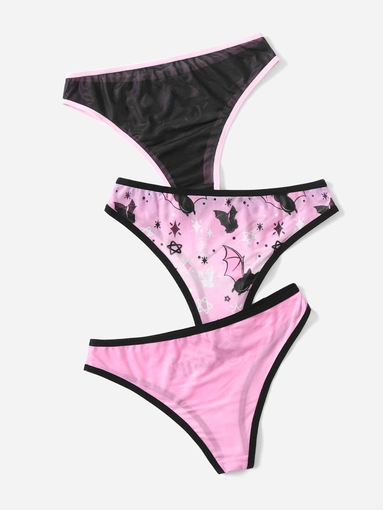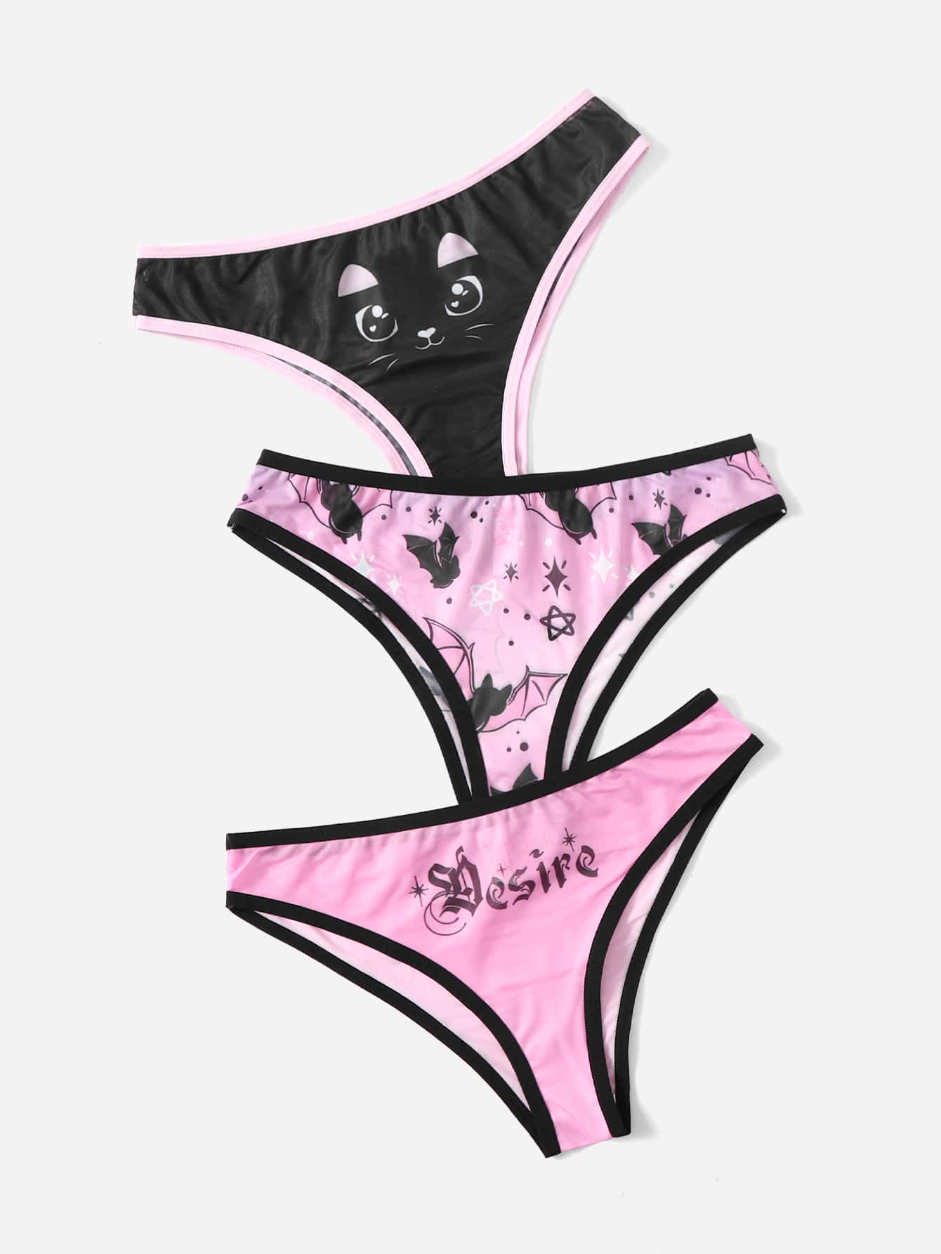 3 pièces Set de culottes dessin animé à liseré contrastant