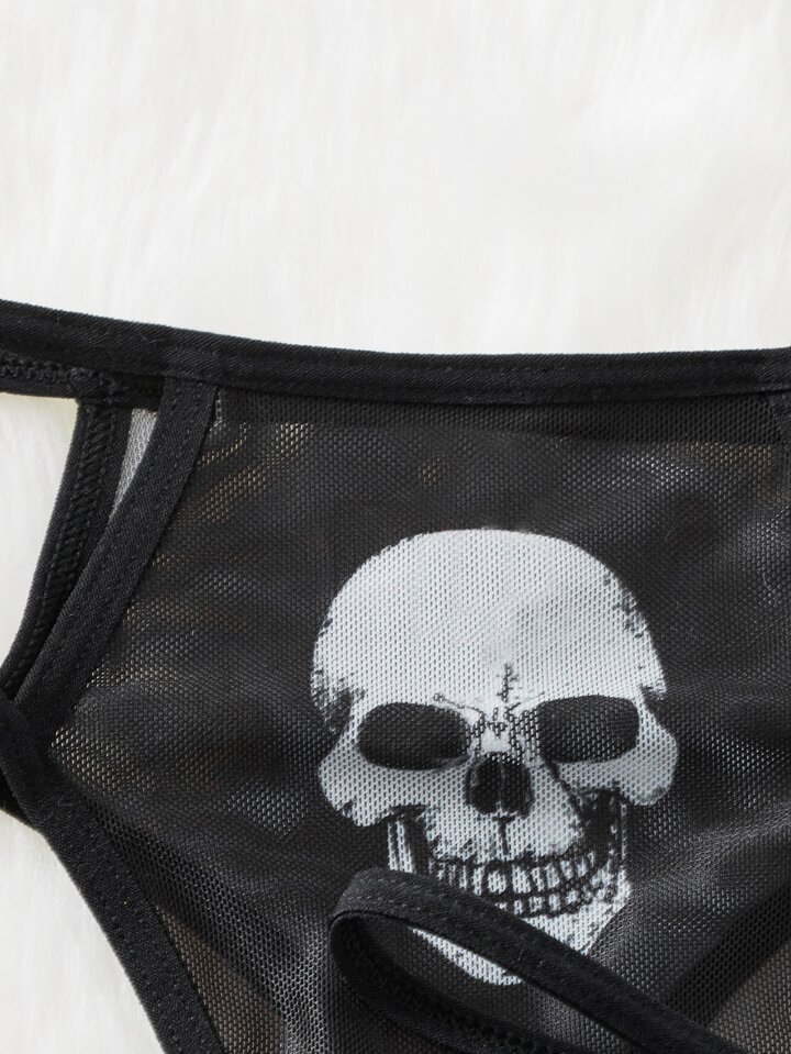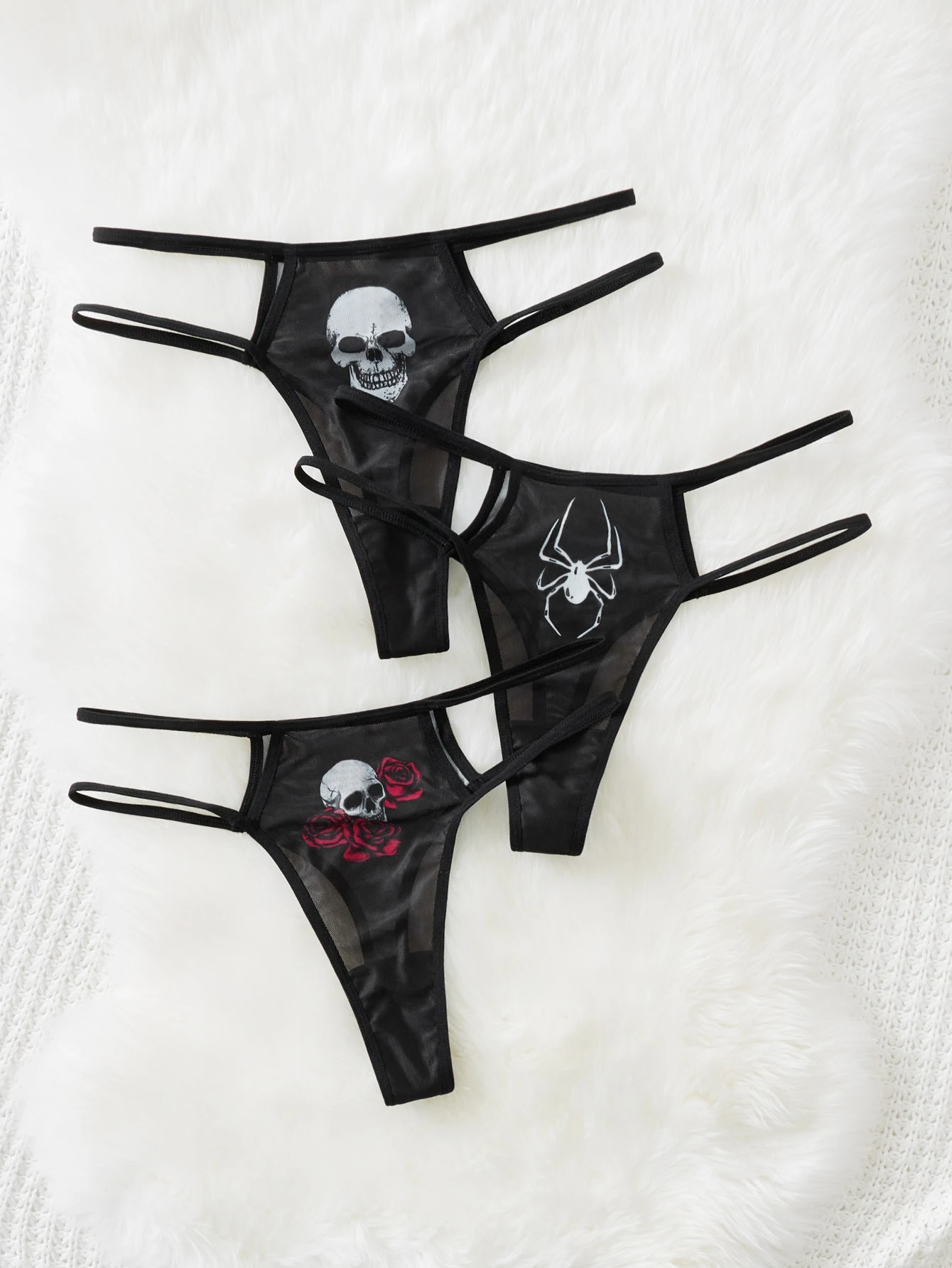 3 pièces Ensemble de tangas à imprimé floral et squelette découpe