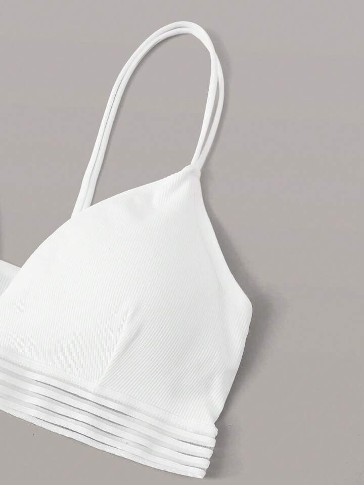 3 pièces Set de soutien-gorge côtelé avec tulle rayé