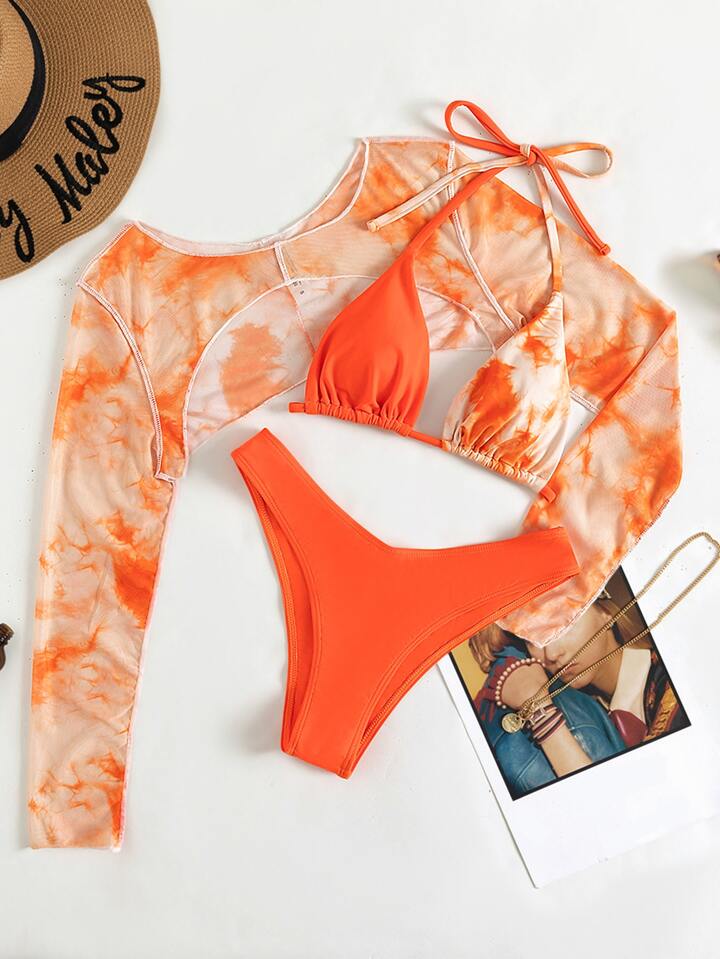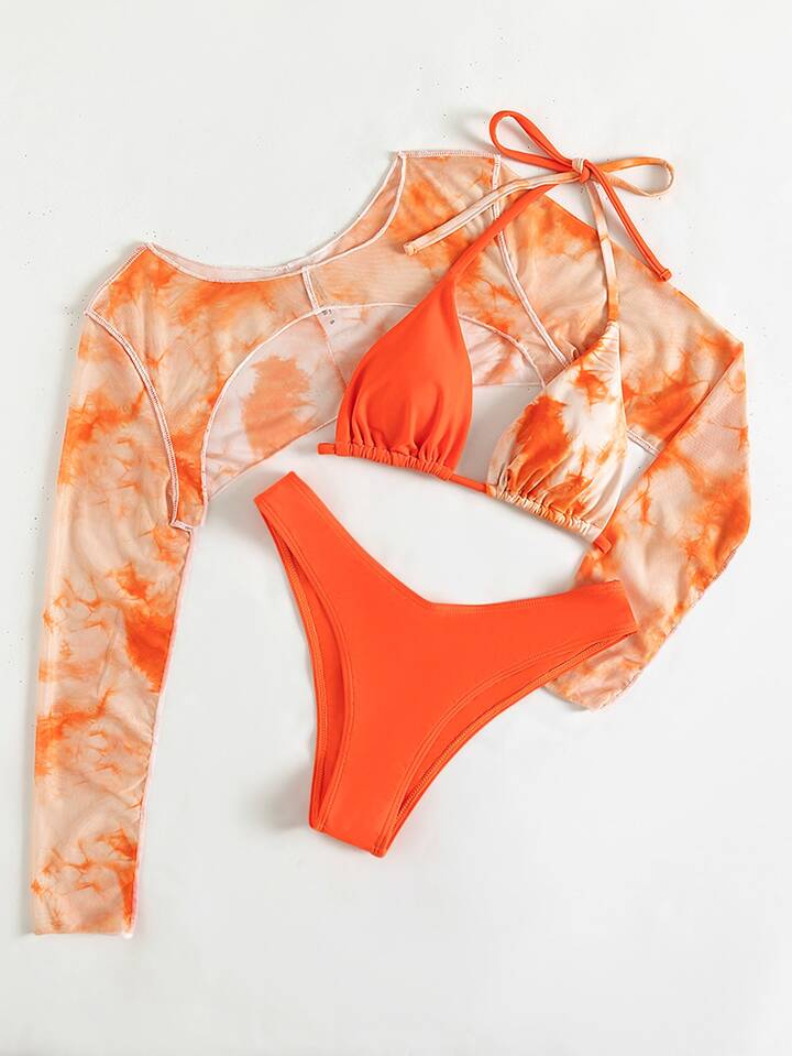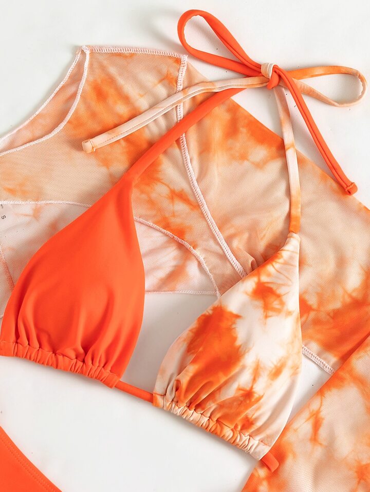 3 packs Ensemble de bikini triangle micro tie-dye et cache-maillot, pour les vacances d'été à la plage