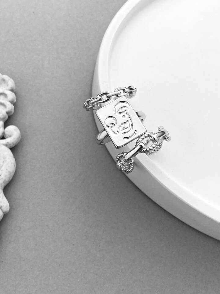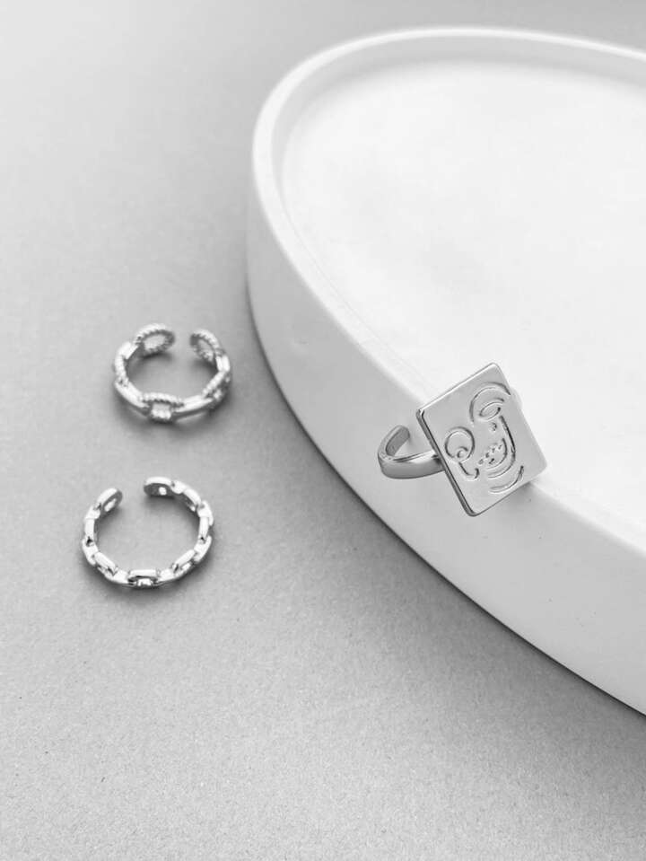3 pièces Bague à breloque visage