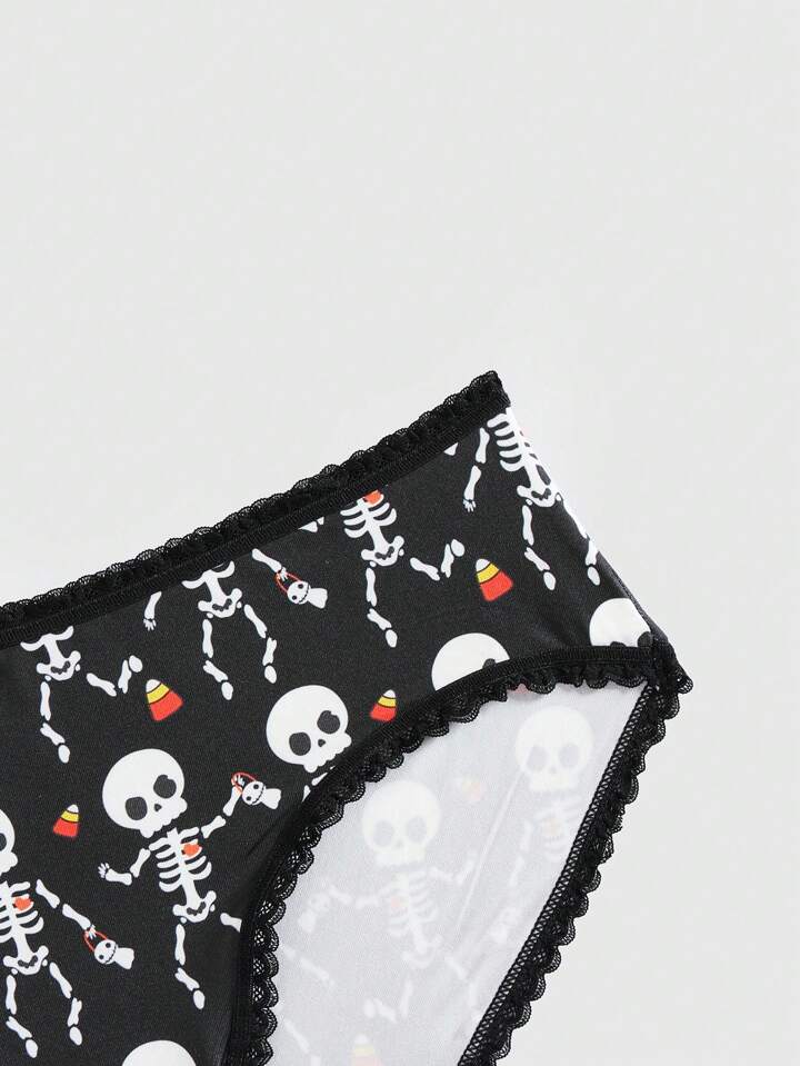 Ensemble De Culottes Sans Couture Imprimées En Dentelle, Crâne, Citrouille, Fantôme Et Croix D'halloween, 3 Pièces/paquet