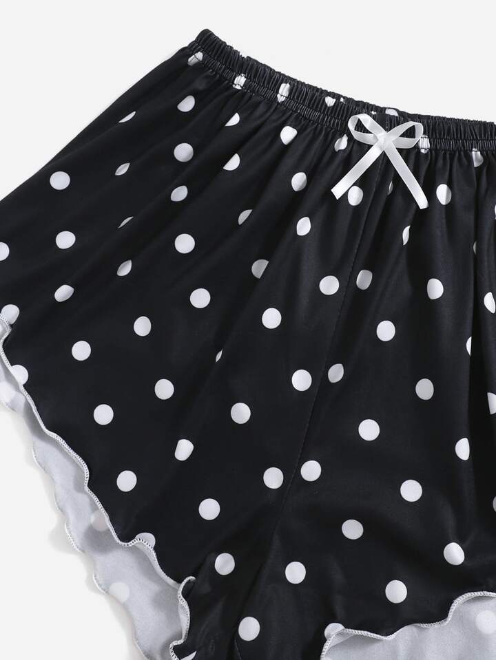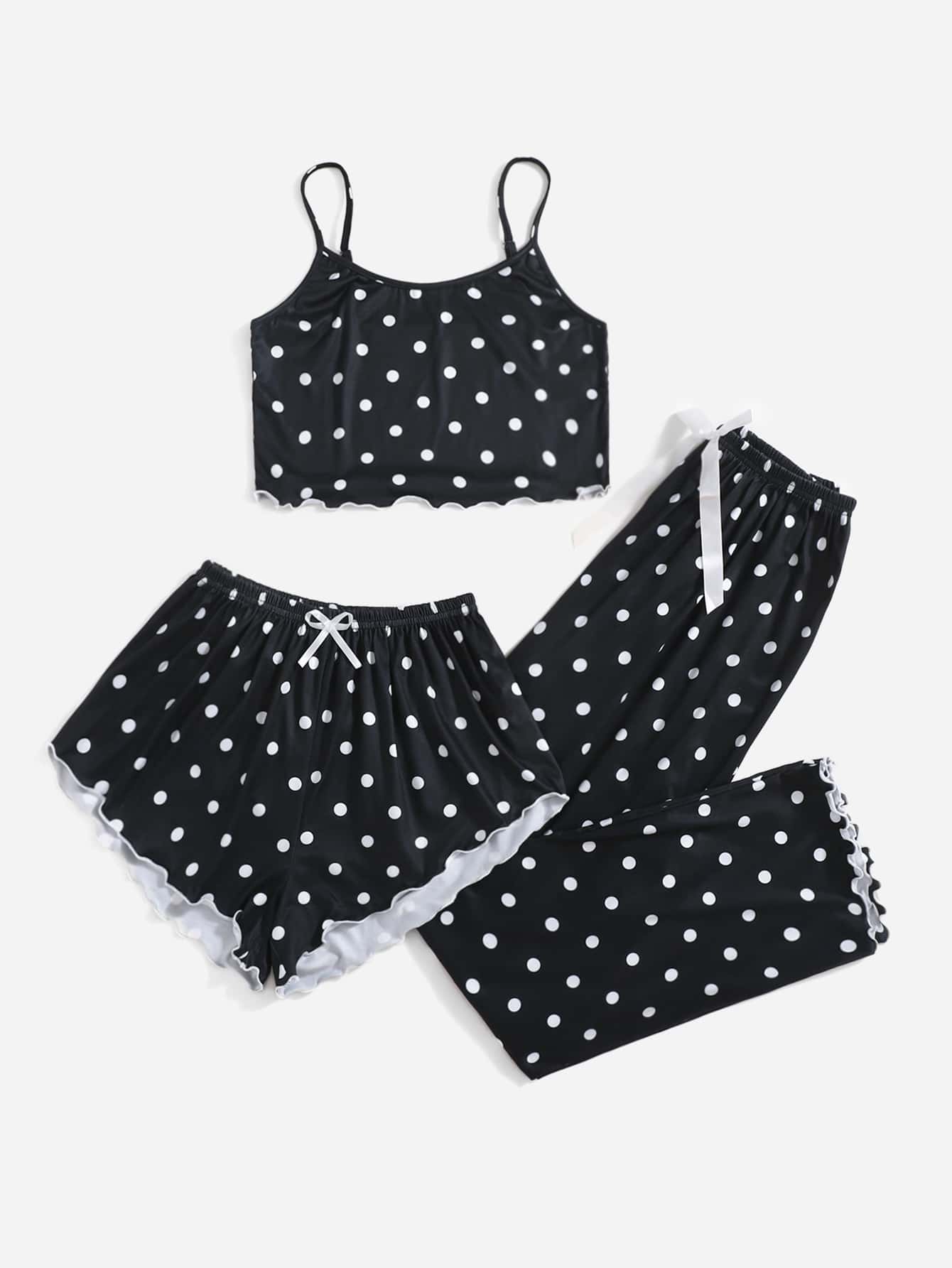 3 pièces Ensemble de pyjama à pois à ourlet ondulé
