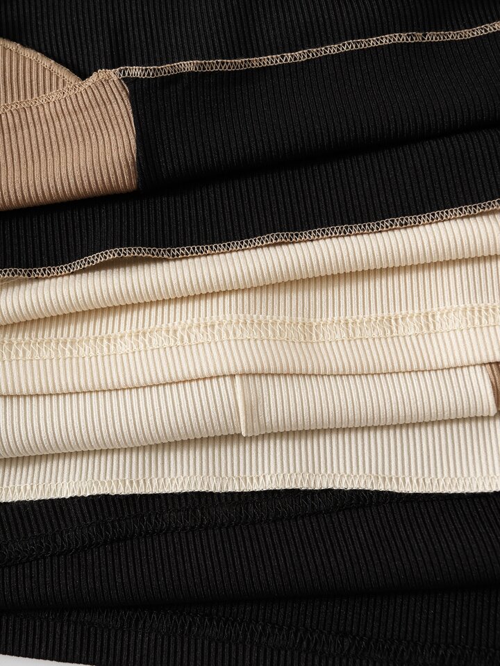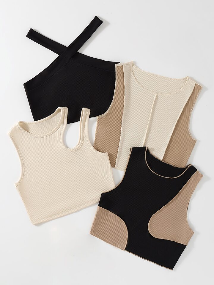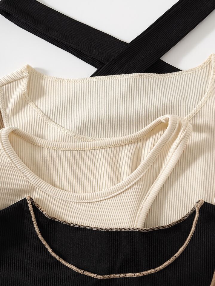 3 pièces Top sans manches côtelé à surpiqûres & 1 pièce Top ras-du-cou