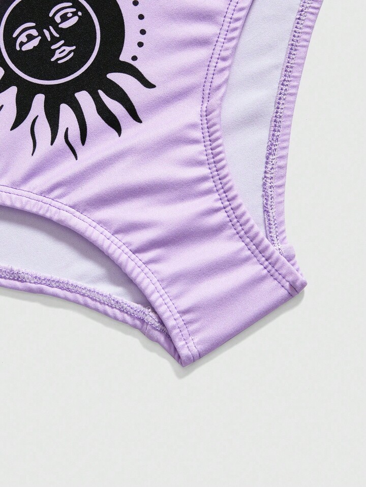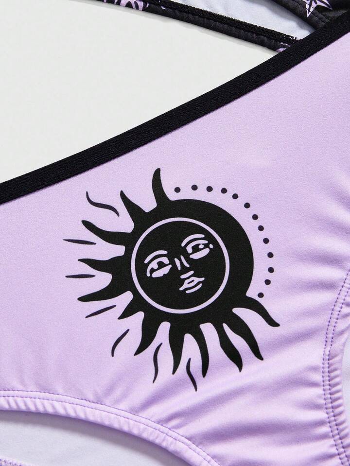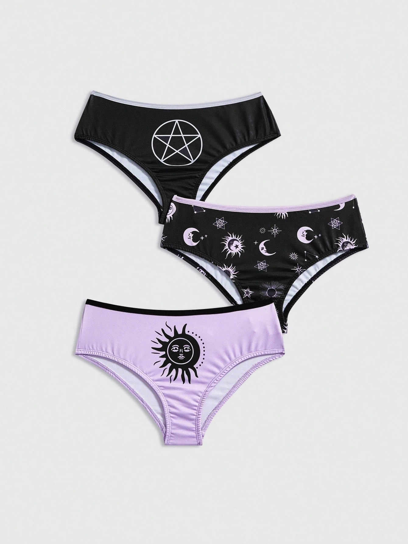 3 pièces/set Culottes triangulaires avec bordure contrastée motif lune et étoiles gothiques sombres