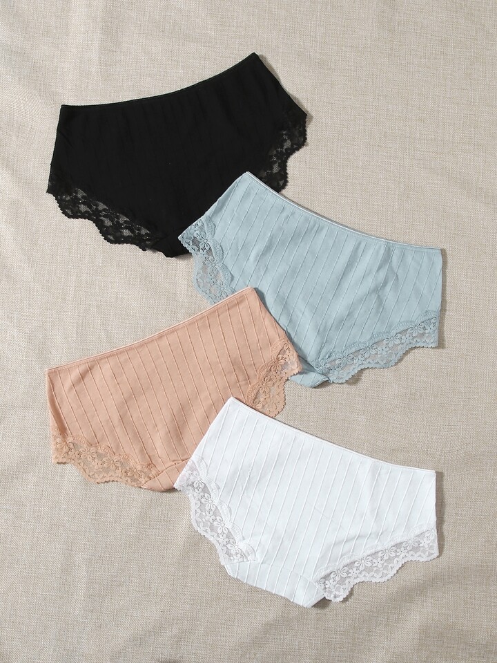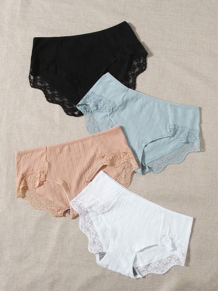 4 pièces Culotte à ourlet en dentelle