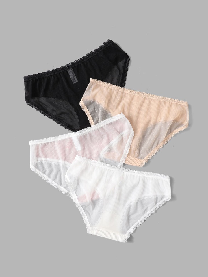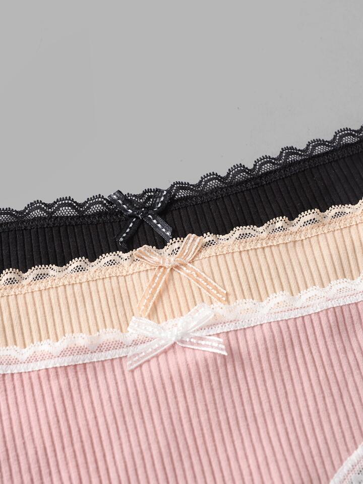 4 pièces Ensemble slip à nœud papillon ourlet en dentelle