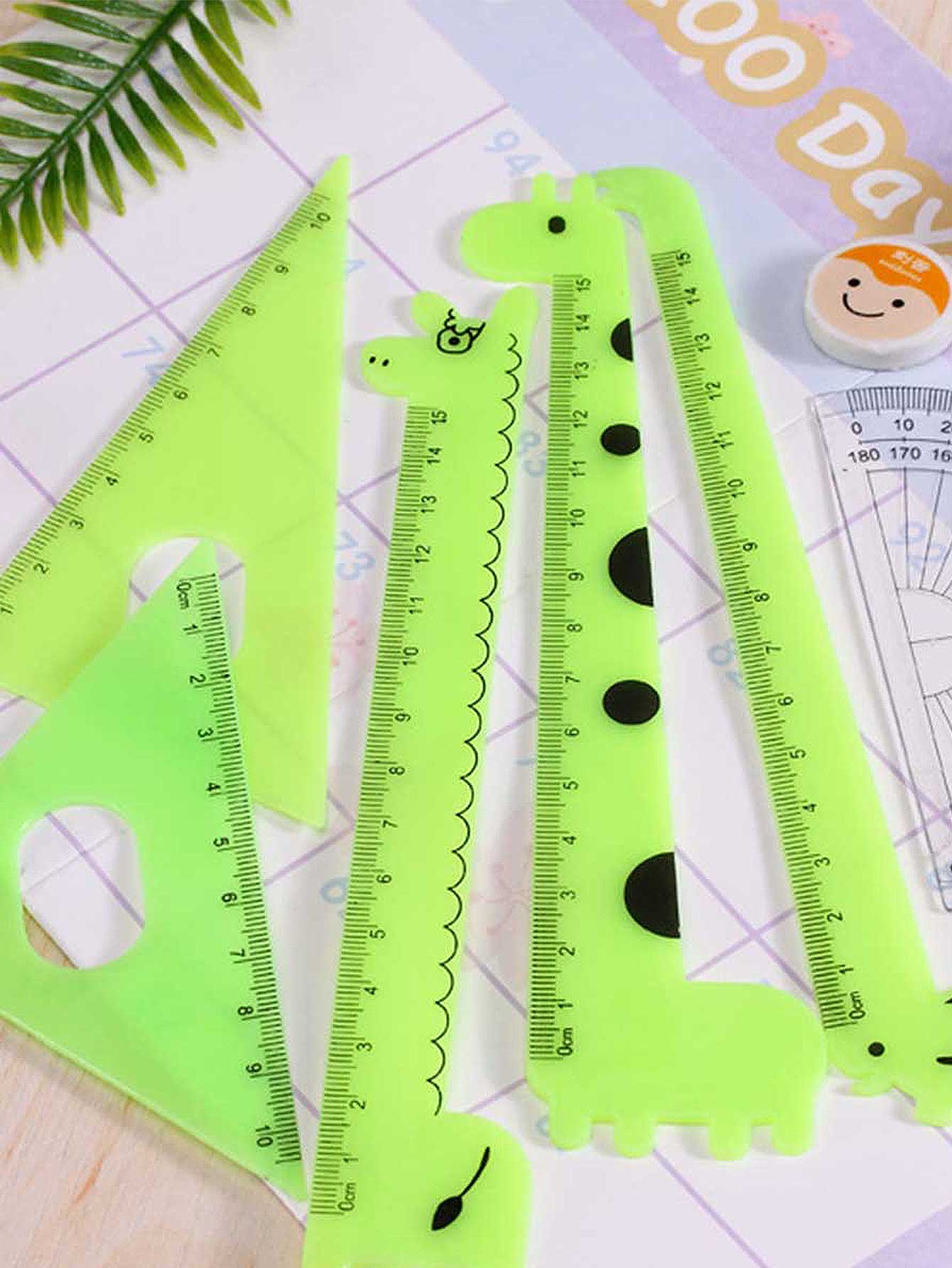 4 pièces Set de règle plastique design girafe cartoon
