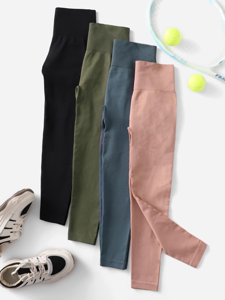4 pièces Legging de yoga sans couture extensible athlétique collants avec taille haute