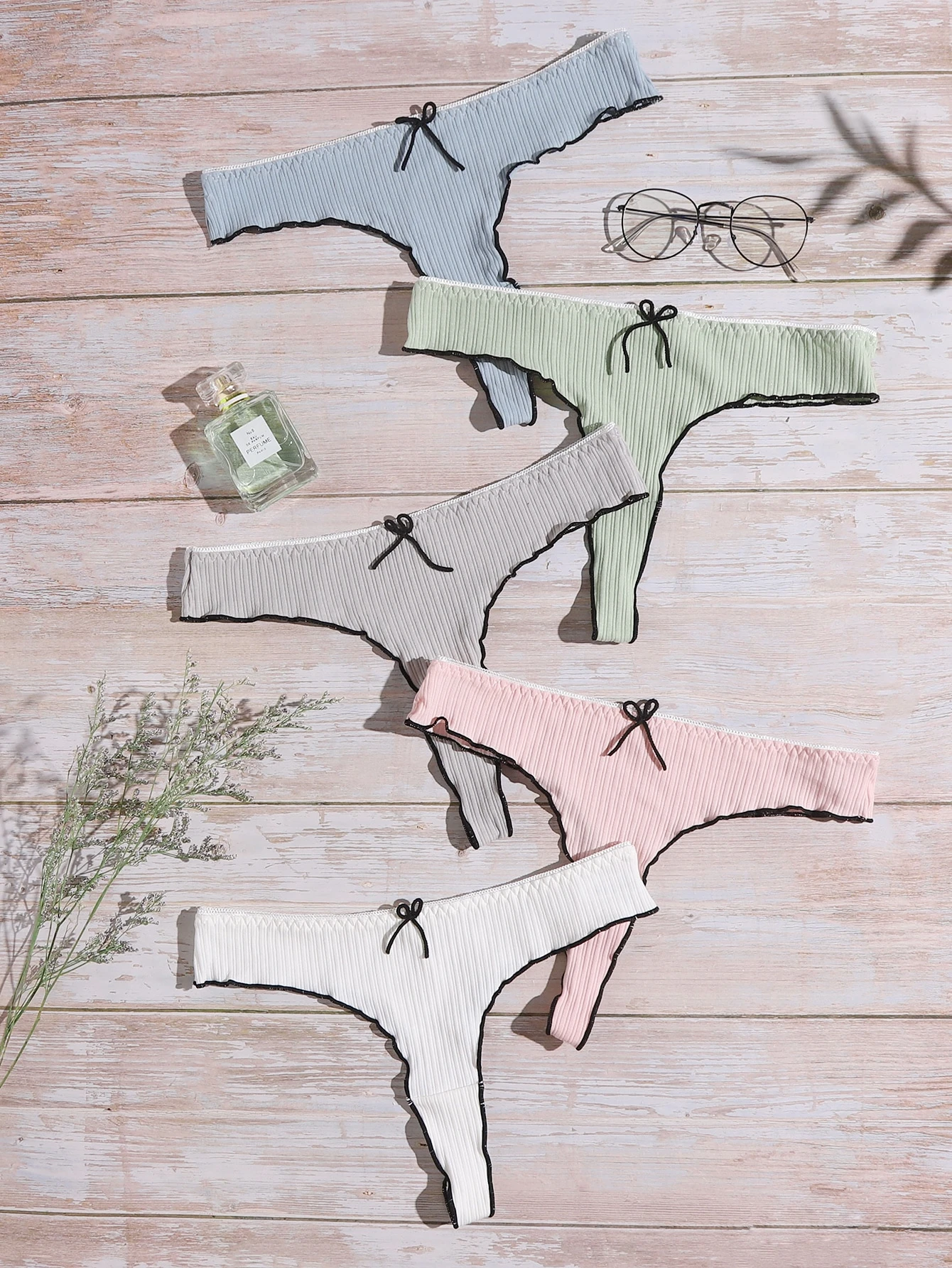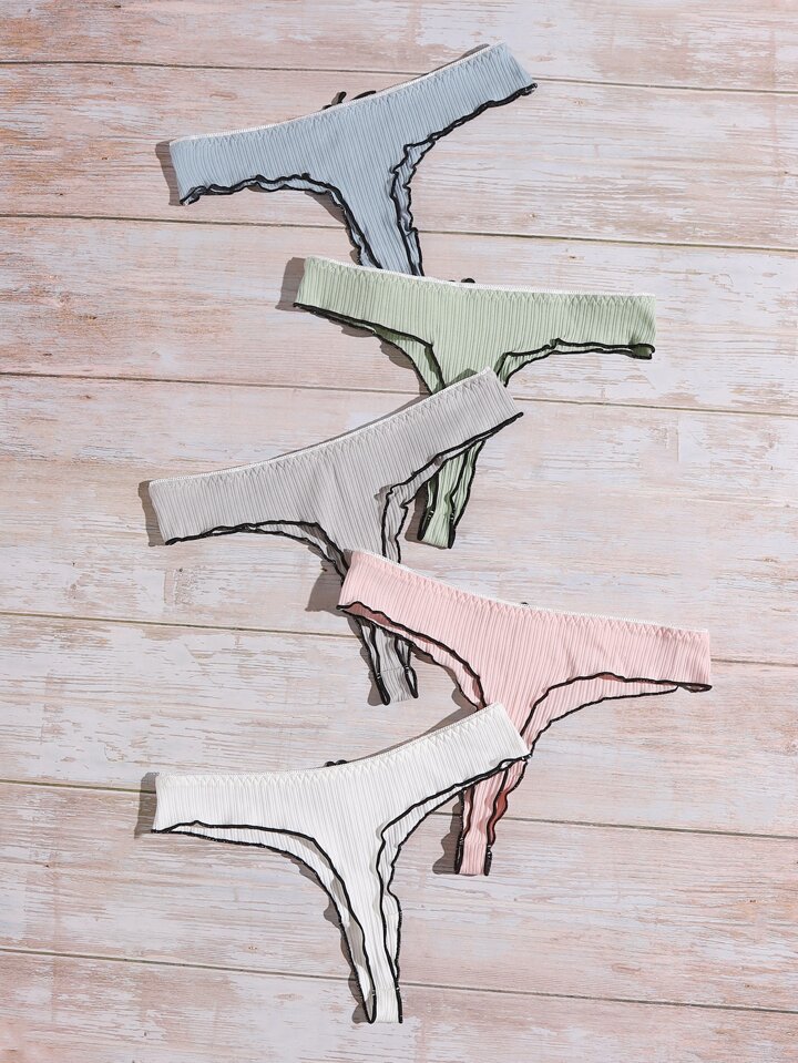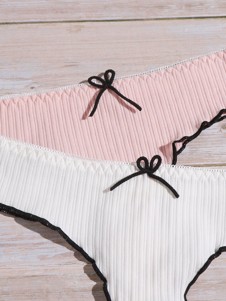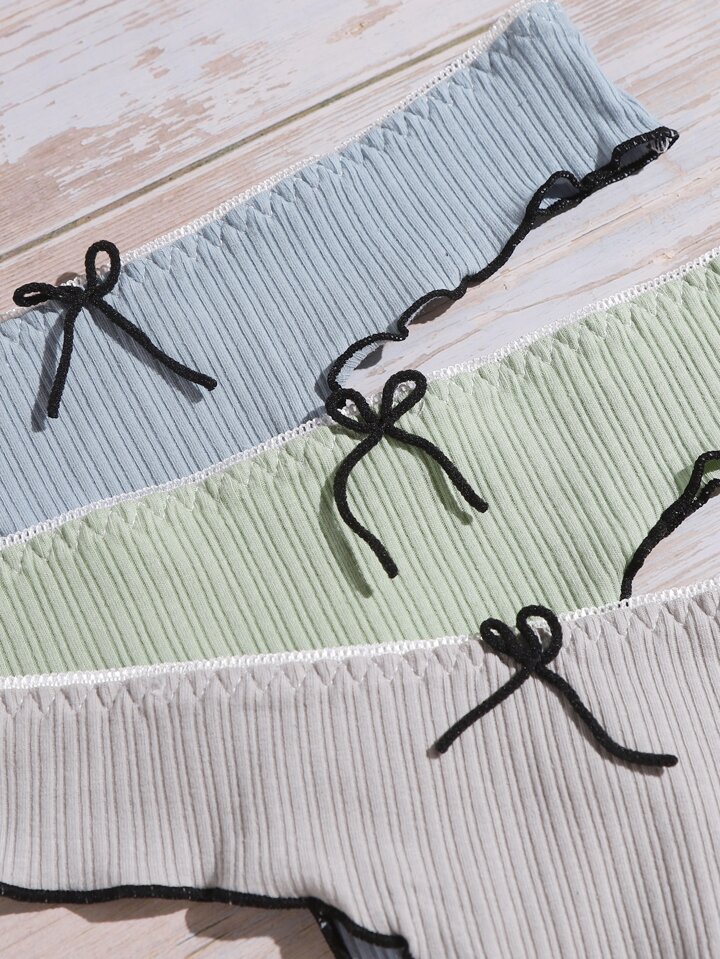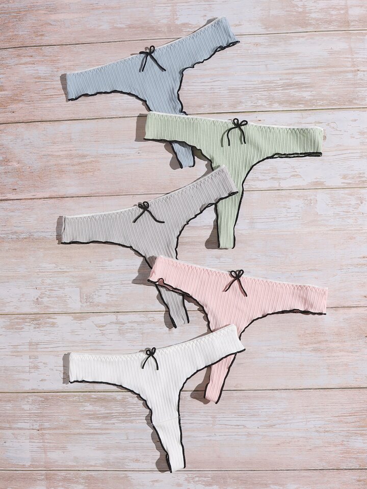 5 pièces Set de culottes à ourlet ondulé à nœud papillon