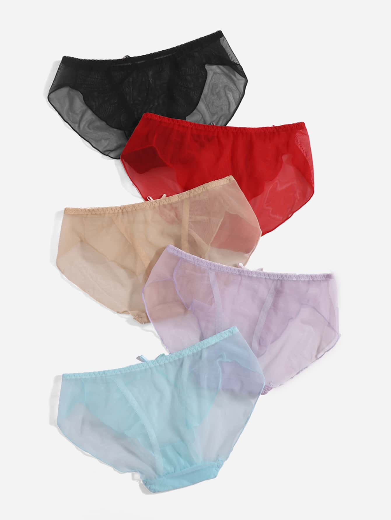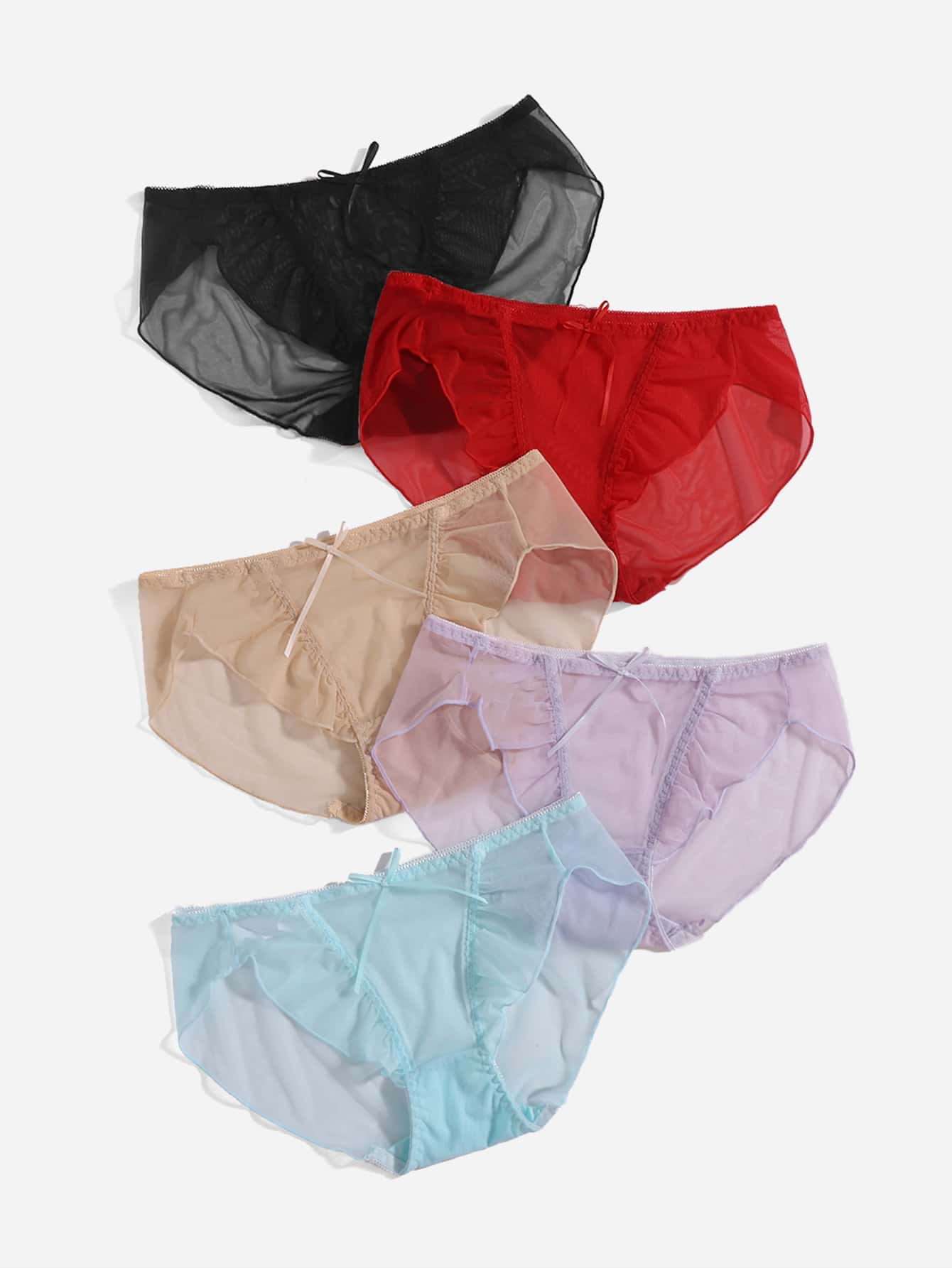 5 pièces Set de culottes en tulle à nœud papillon