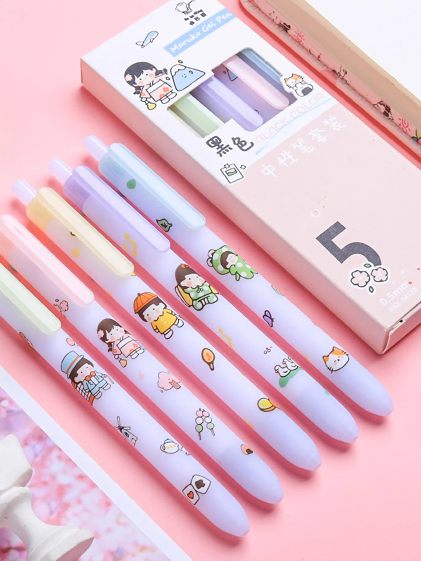 5 pièces Stylo gel aléatoire à dessin animé
