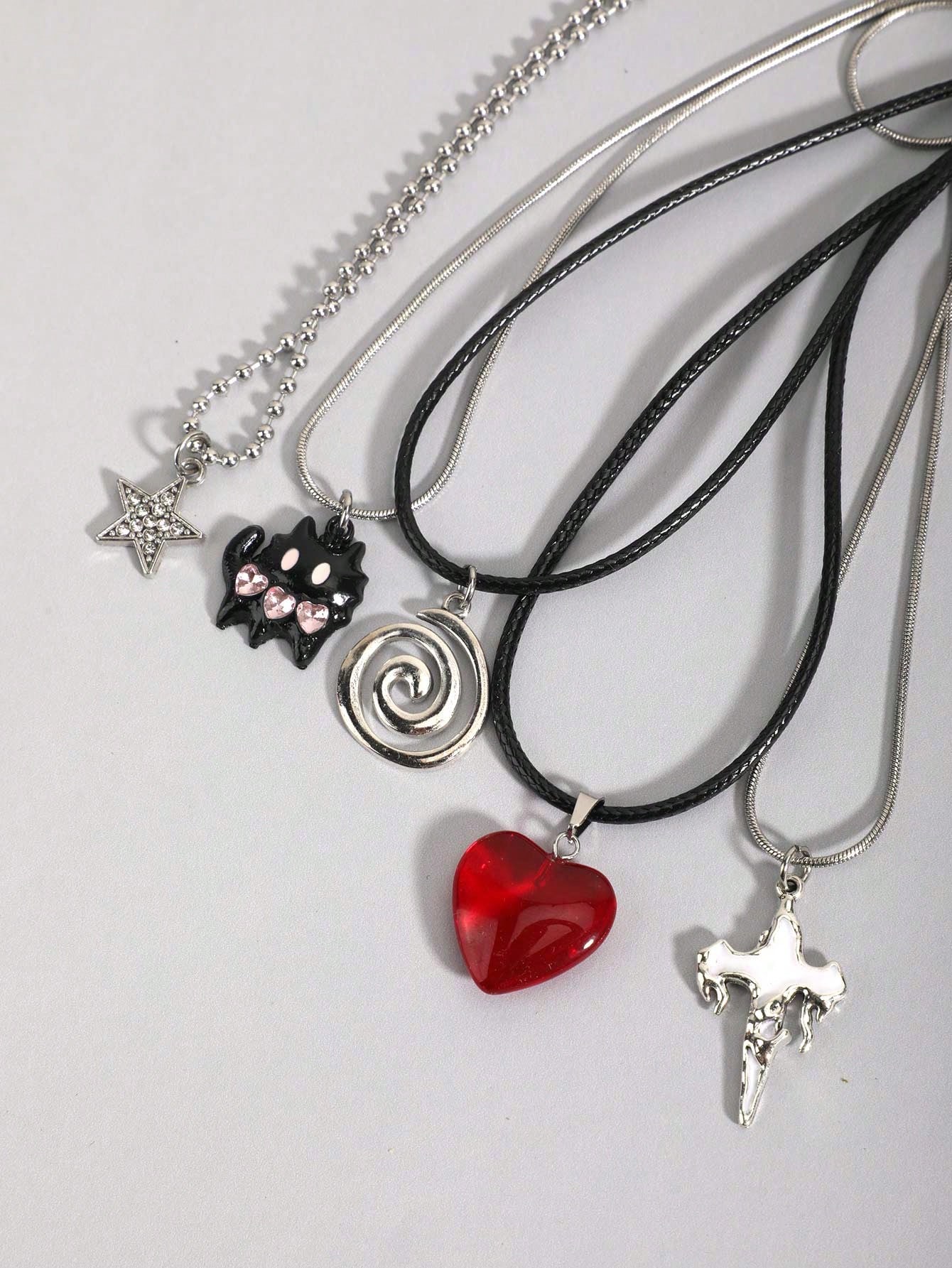 5 pièces Ensemble de colliers vintage gothique avec croix, soleil, lune, papillon de nuit, crâne