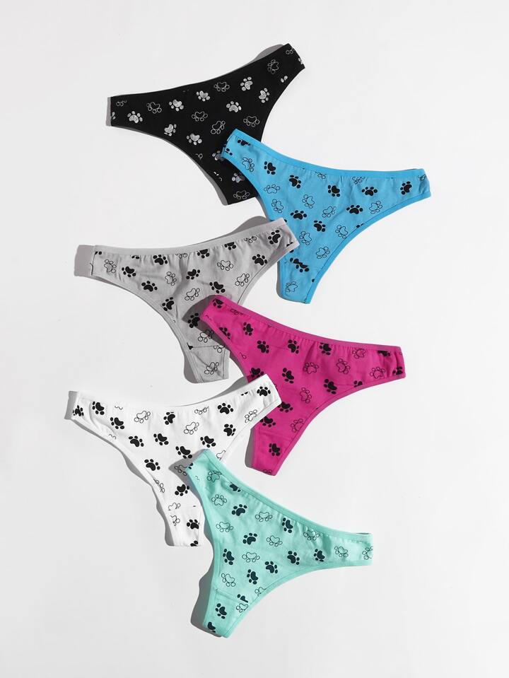 6 pièces Set de tanga avec imprimé cartoon